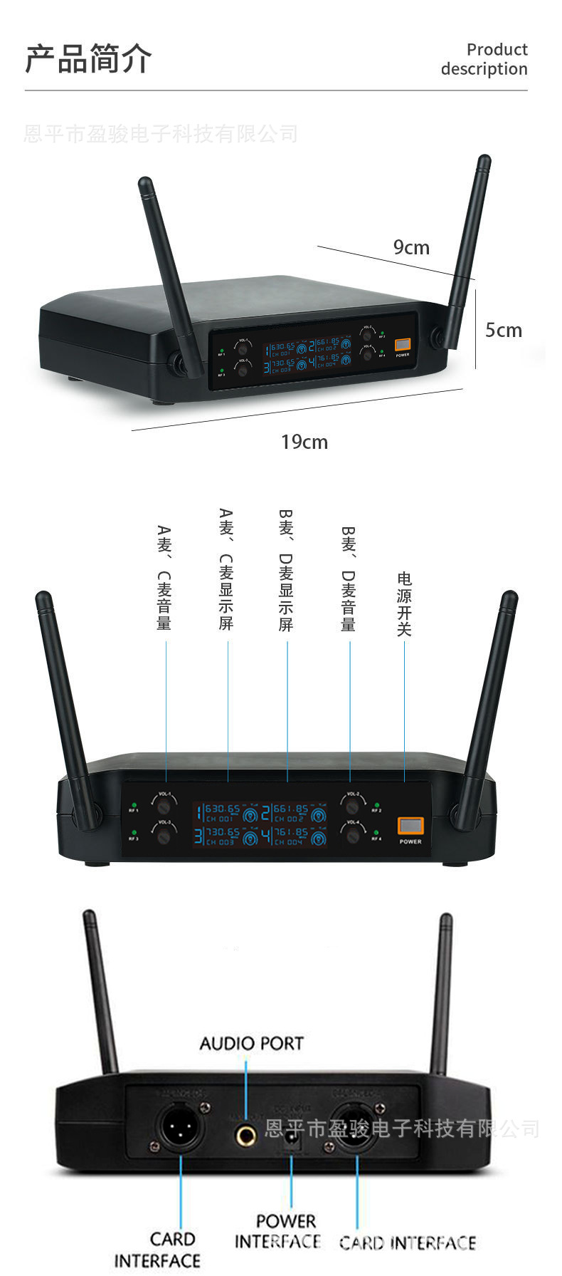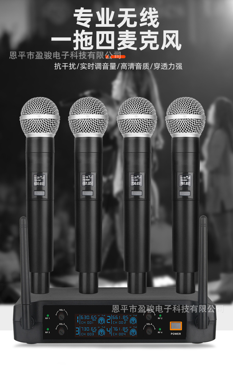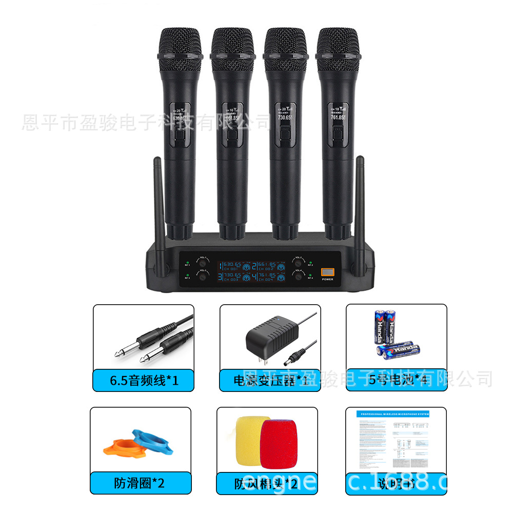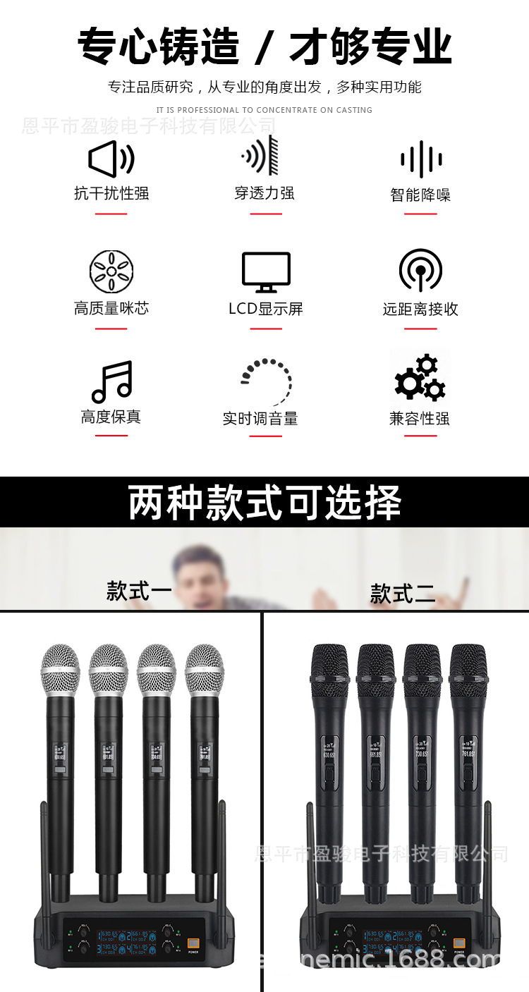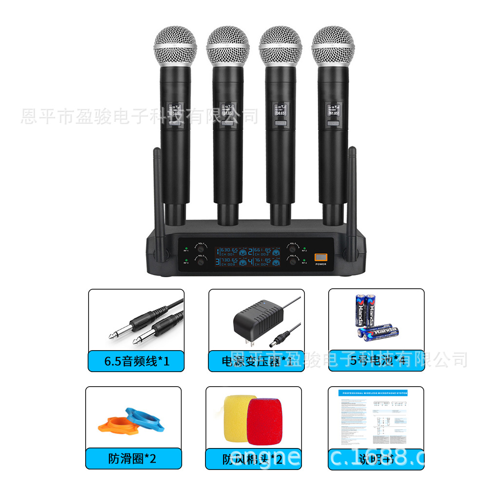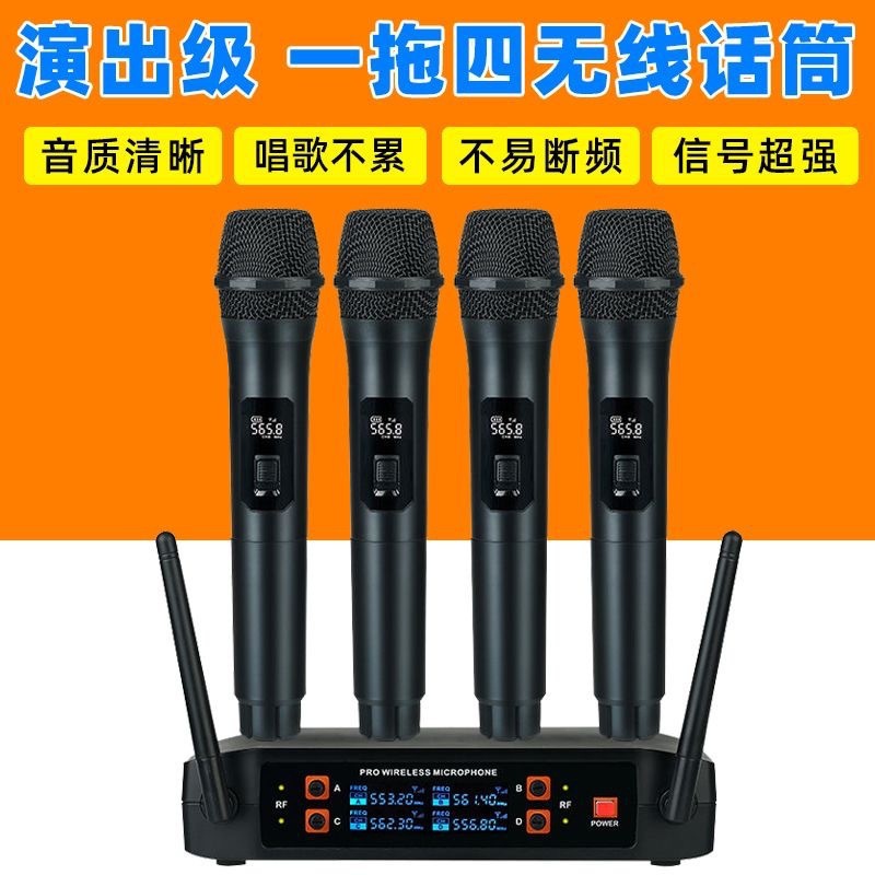 跨境外贸2.4G专业一拖四无线麦克风可充电话筒舞台KTV音响唱歌