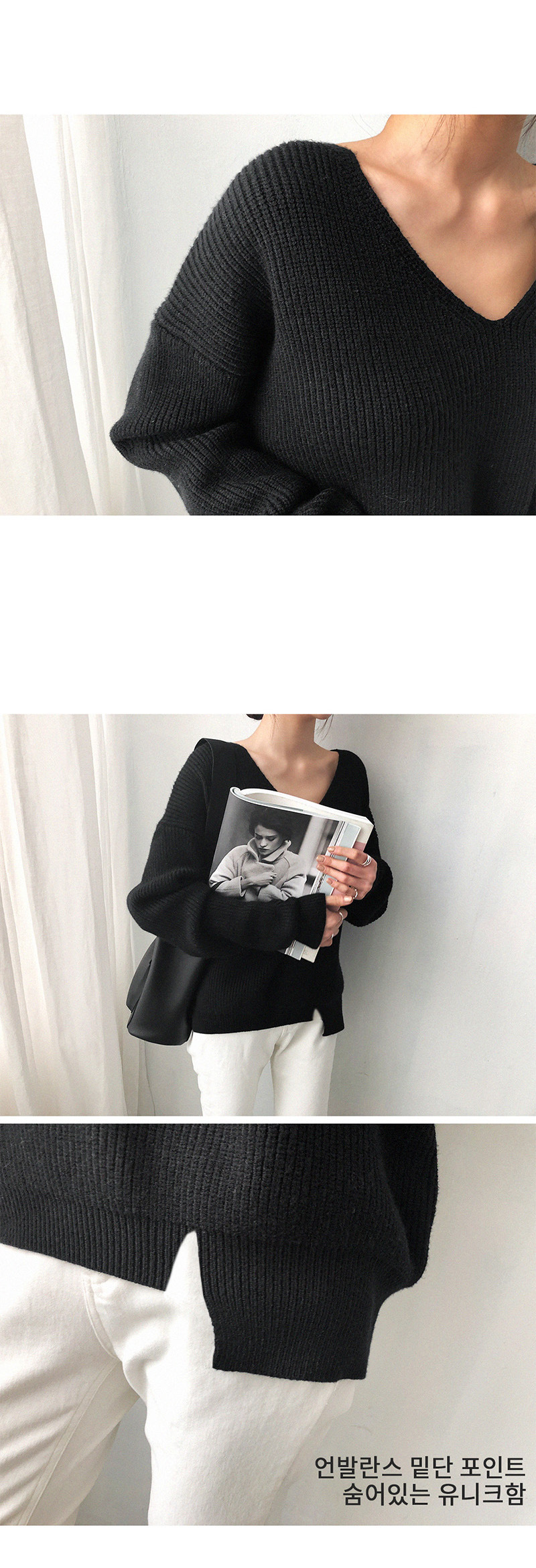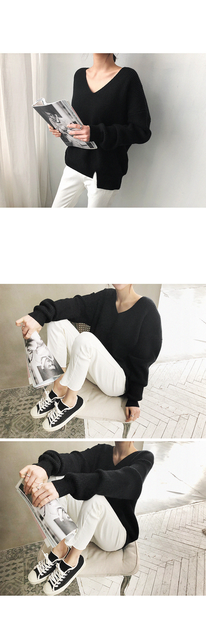 韓国のニットの女性2023秋冬のゆったりした怠惰な風の裾は新型の純色vネックのプルオーバーのセーターをフォークします。