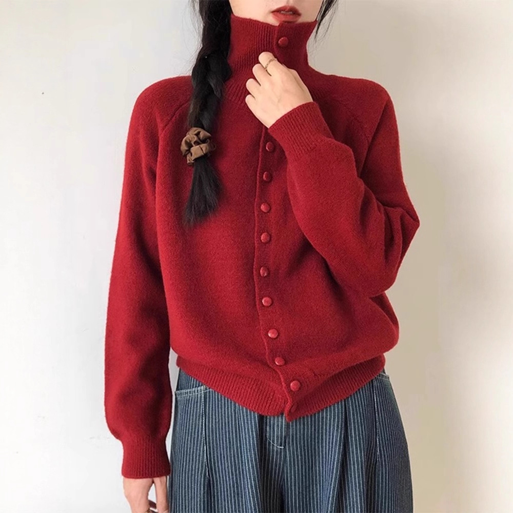 翻领软糯针织开衫女秋冬季新款复古韩系慵懒风高级感宽松毛衣外套