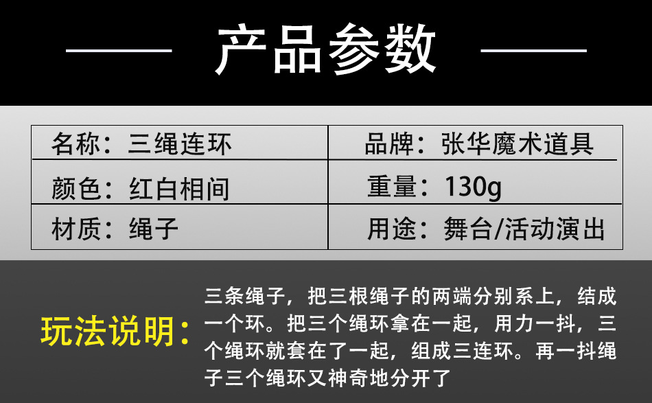 張華マジック道具卸売り究極三連ロープマジック製品三本ロープメーカー直販工場卸売り