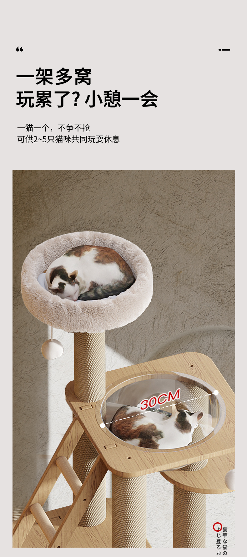 ペット貝亜猫は猫の巣の猫の木の一体の全実木を支えません。