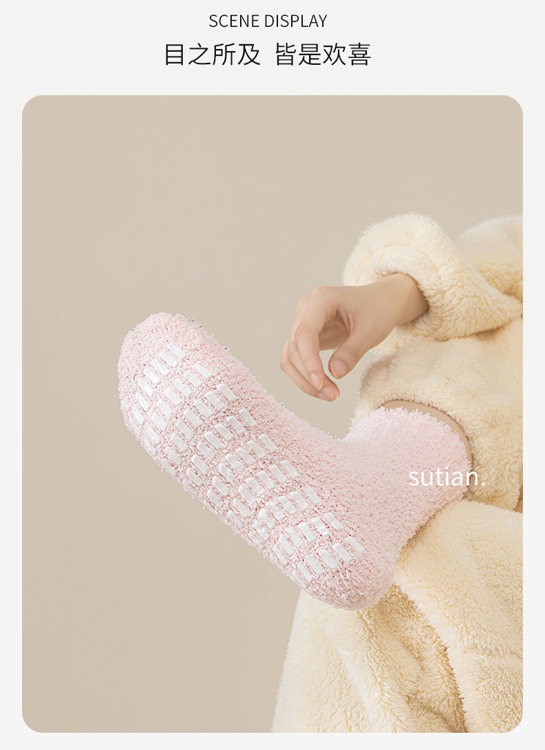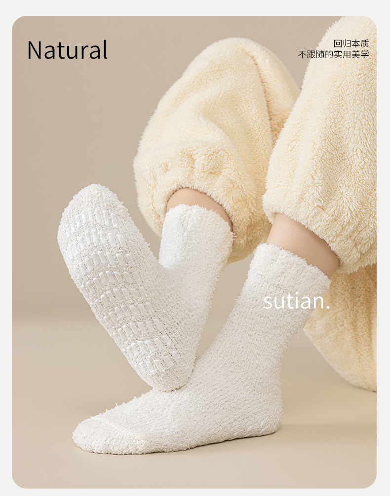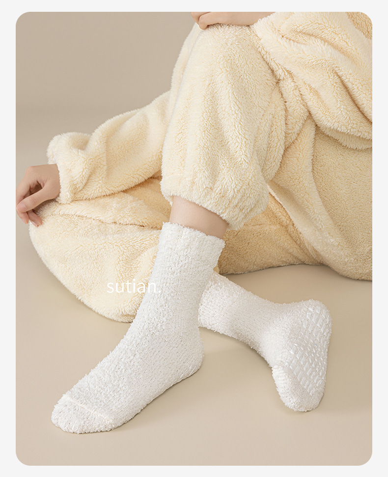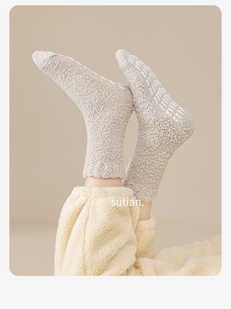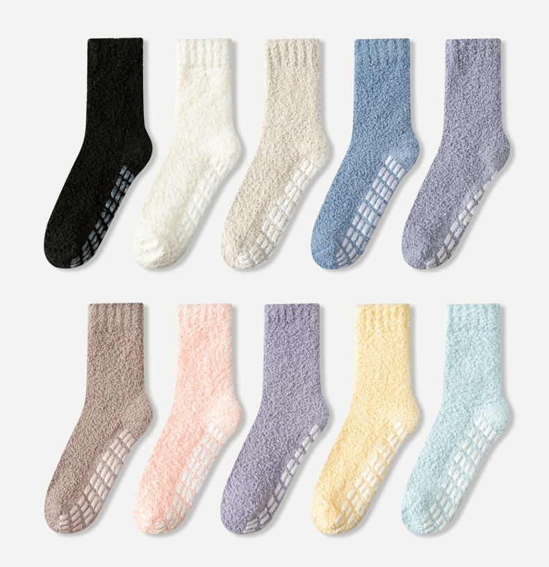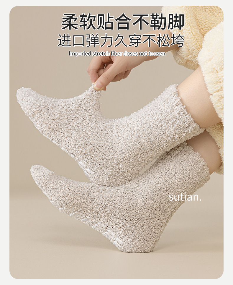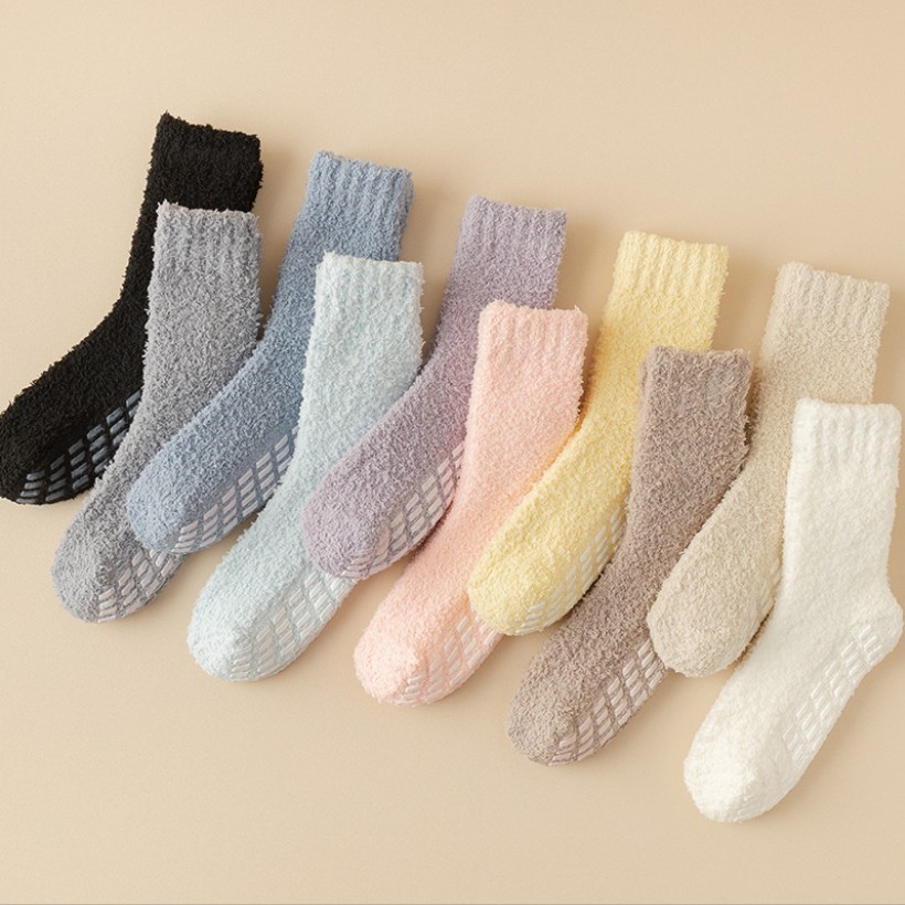 毛落ちしないコーラルベルベット靴下男女純色滑り止め点ゴム靴下秋冬保温タオル半面ベルベット床靴下国境を越えた