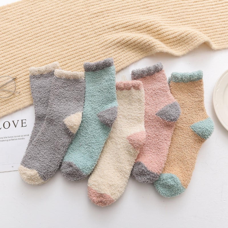 サンゴの毛の靴下の女性の中筒の靴下の秋冬のベルベットの厚い保温の睡眠の靴下の女性の冬の松の口の月子の靴下