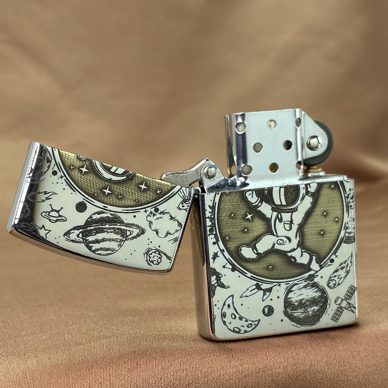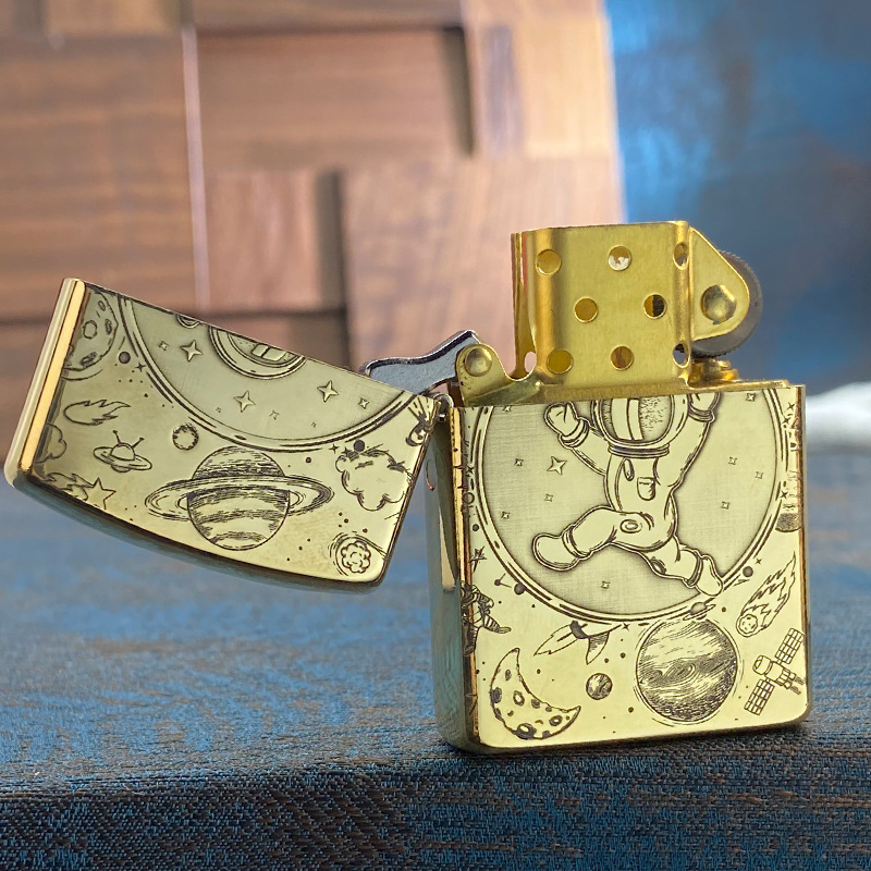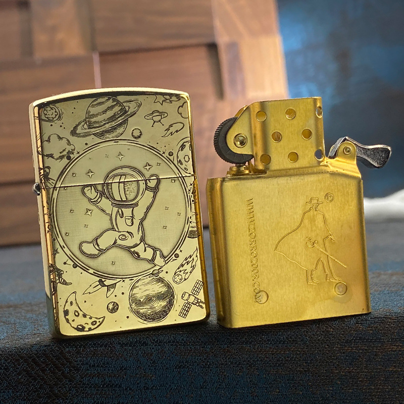 ゾロzorroエッチング両面宇宙飛行士真鍮灯油ライター創意個性レトロ彫刻メーカー卸売り