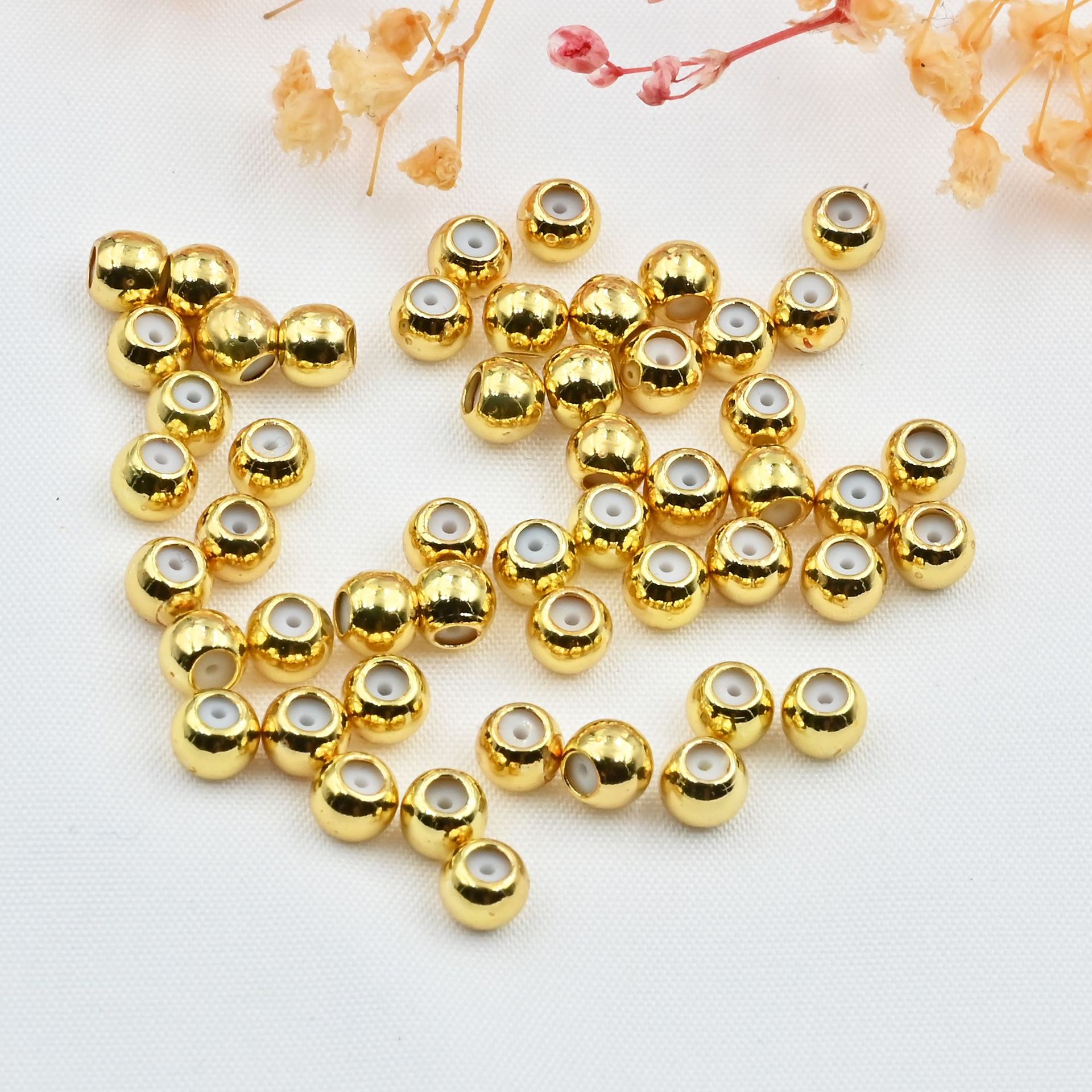 18k14k包金保色珠転運珠隔珠小金珠光沢面実心珠diyアクセサリービーズ散珠