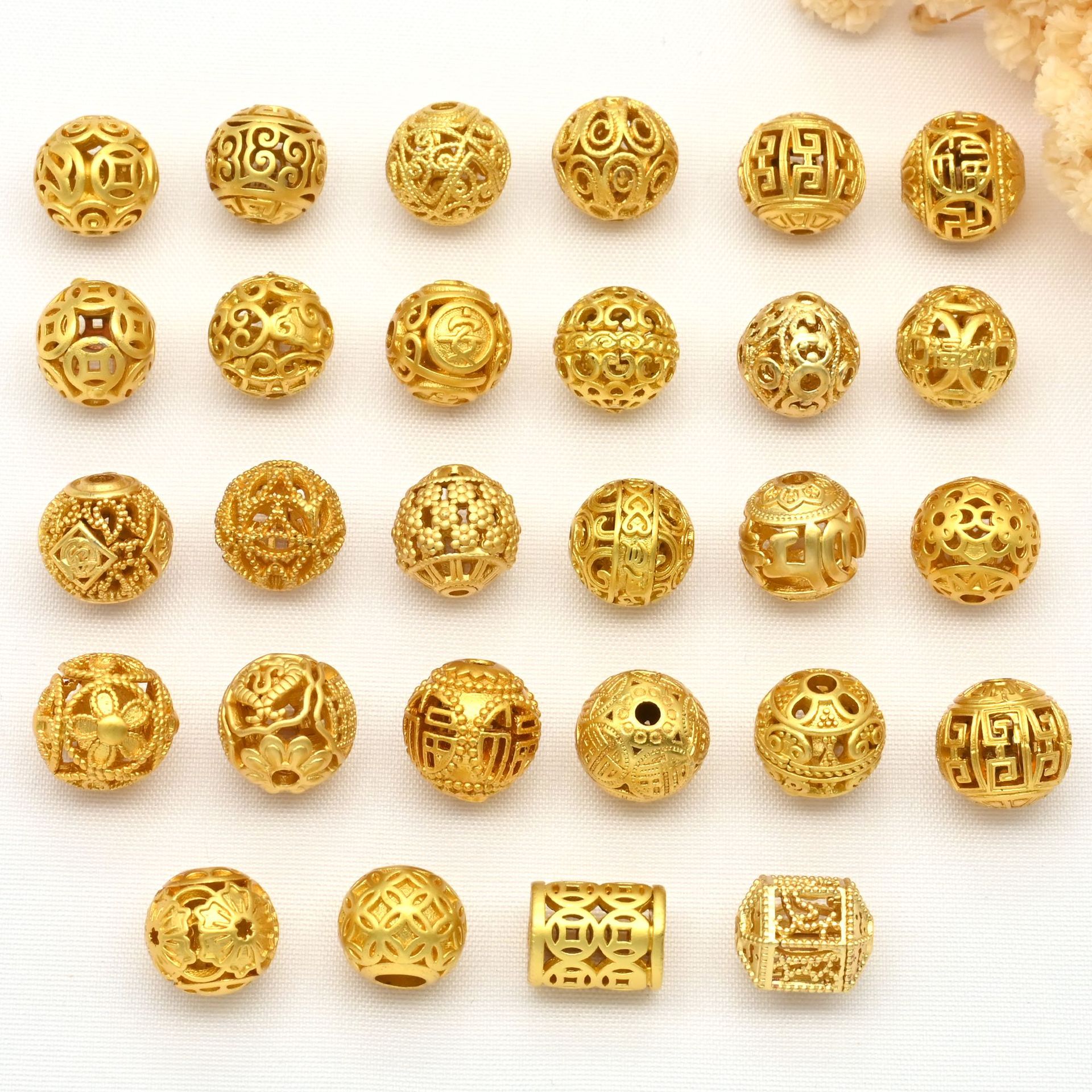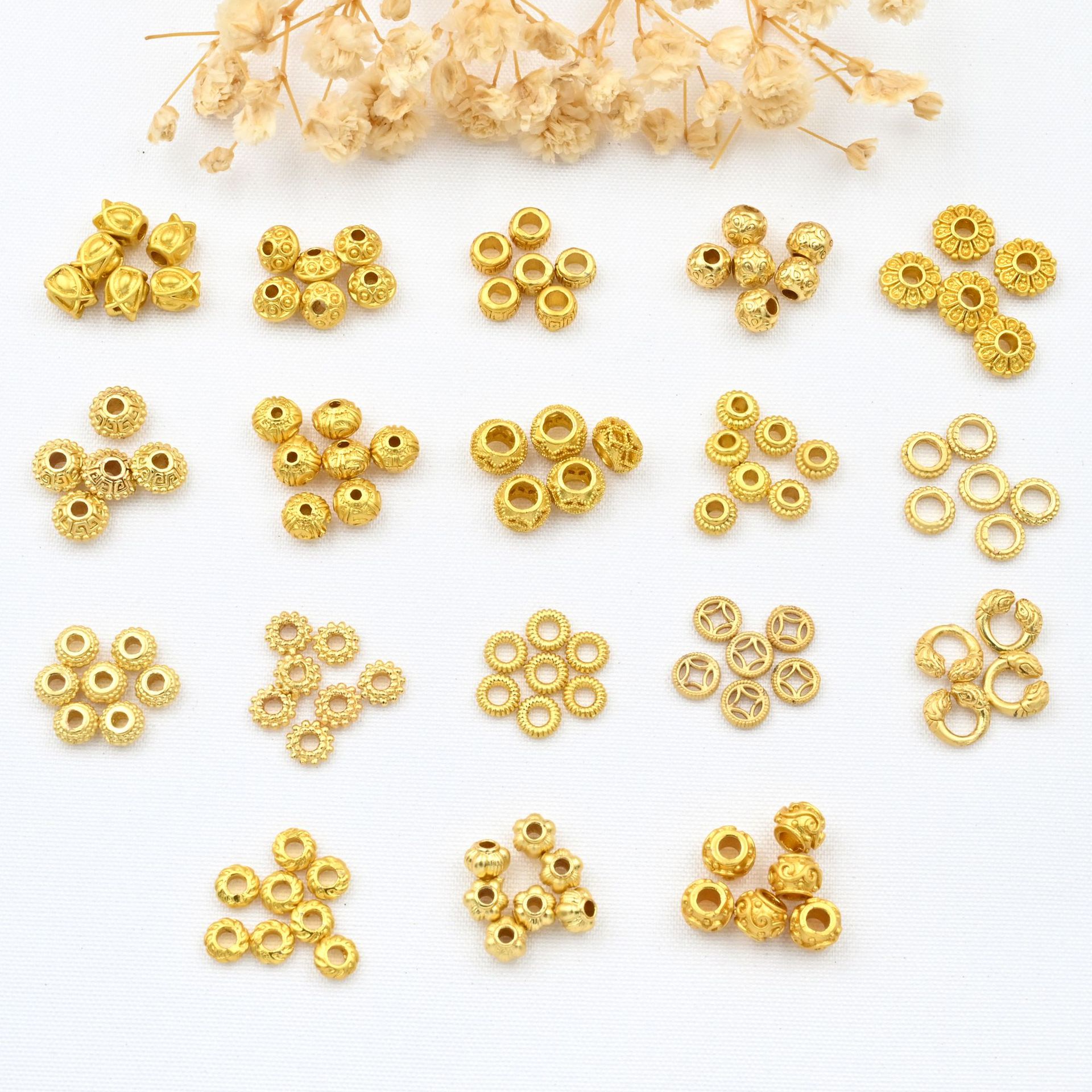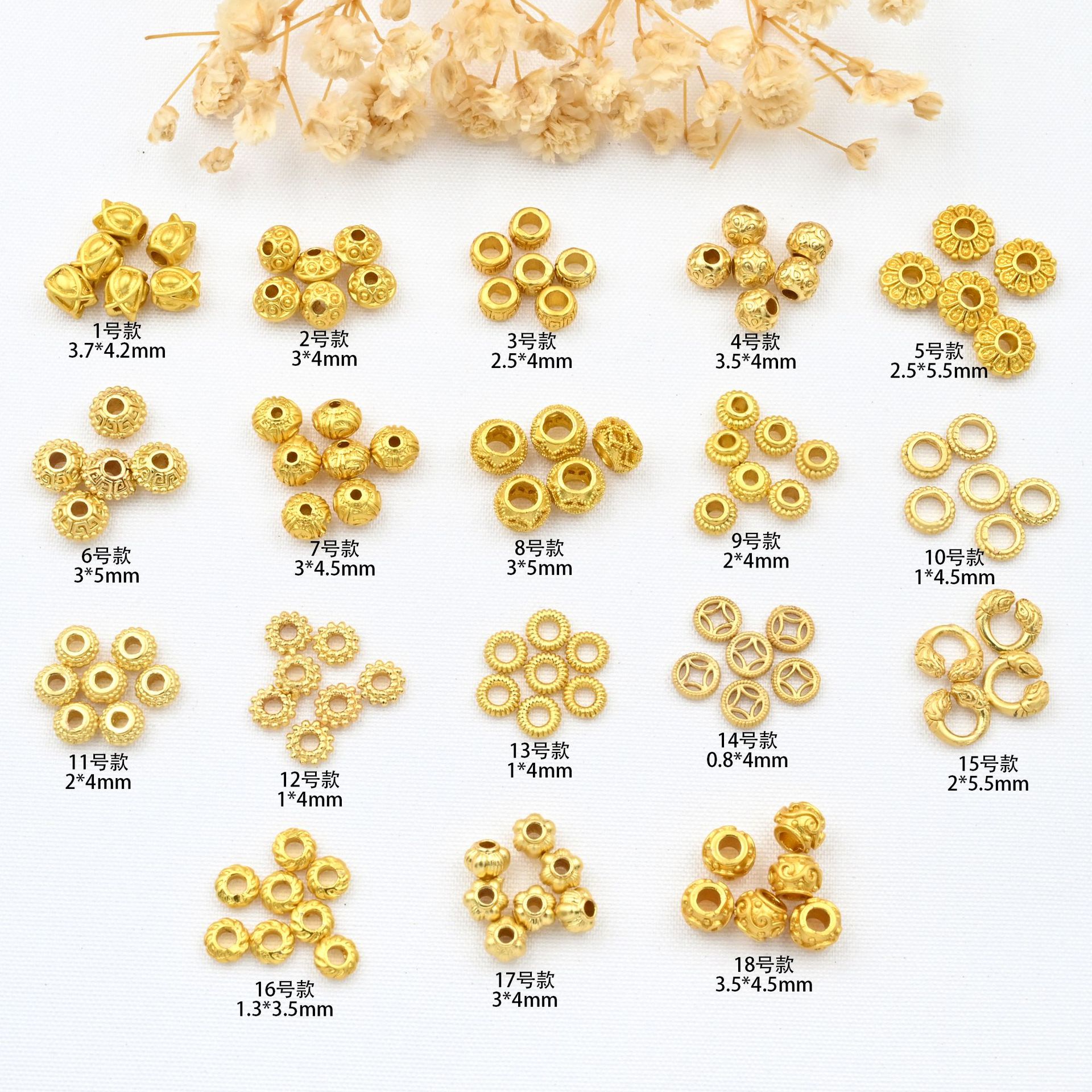 18k光沢転運珠古法金diyアクセサリー手作りビーズ散珠保色包金小金珠卸売り