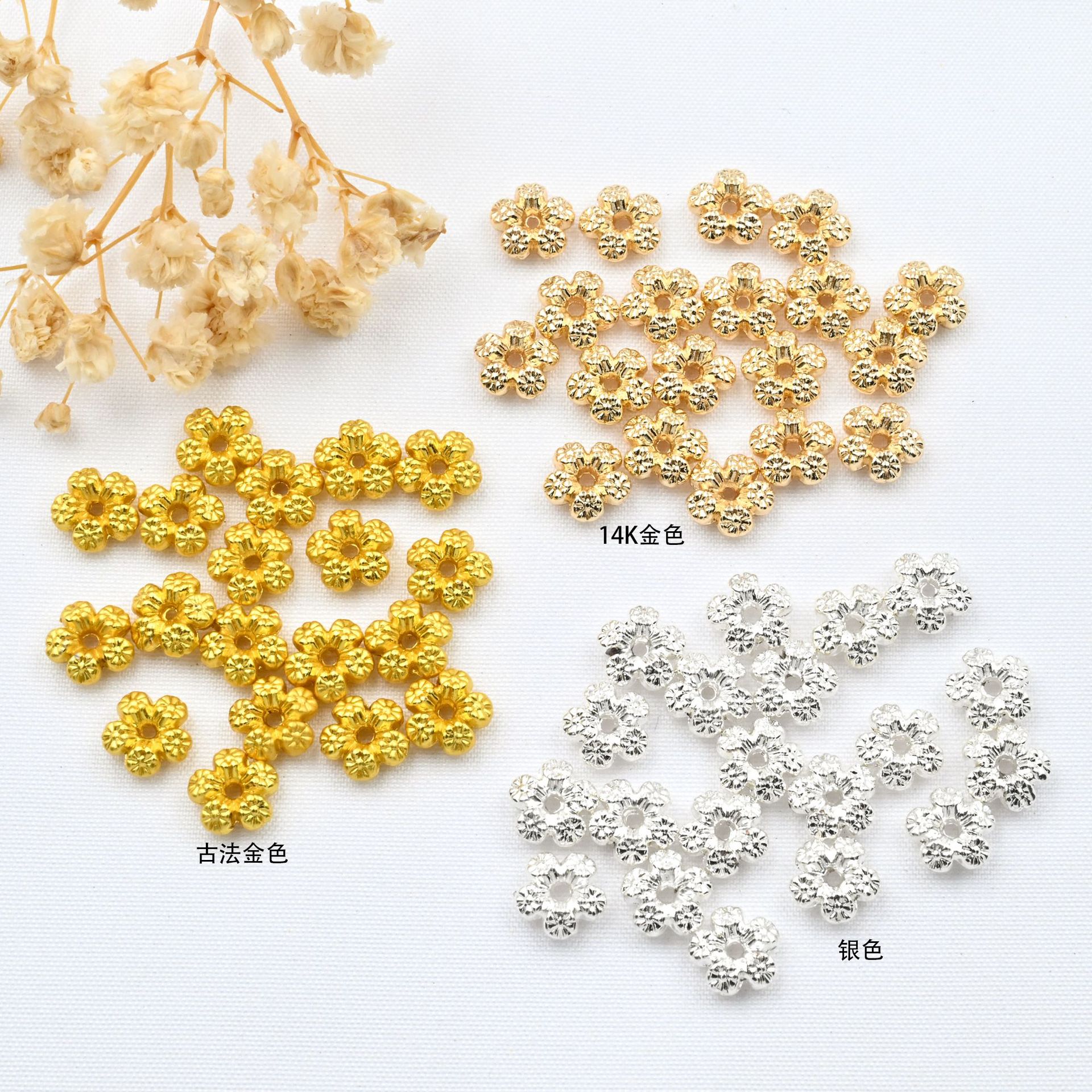 古法金保色切花両面花隔珠花五弁梅花隔片diyビーズアクセサリー部品