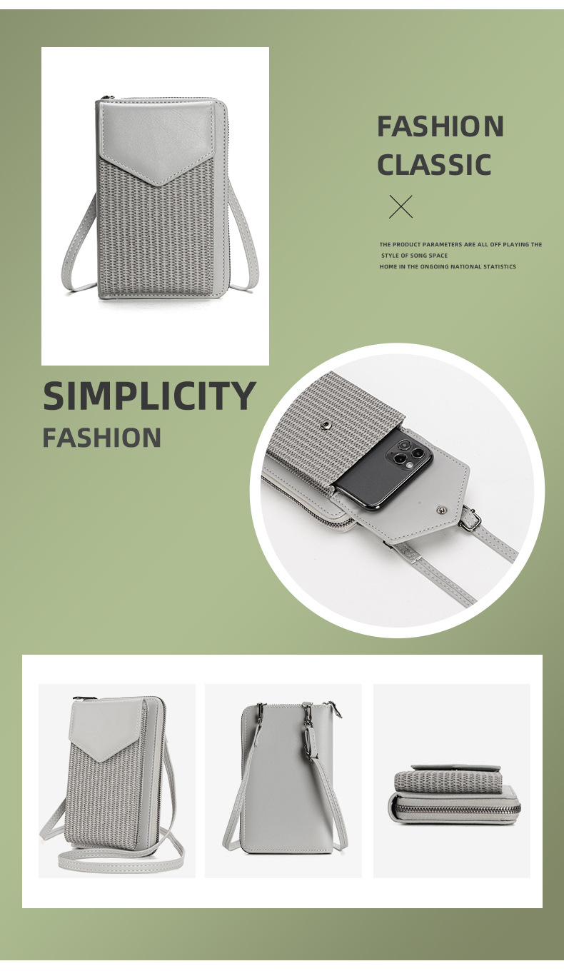 2023新型編みレディース携帯電話バッグ多機能シングルショルダーバッグクロスボーダー外国貿易長型マルチカード財布