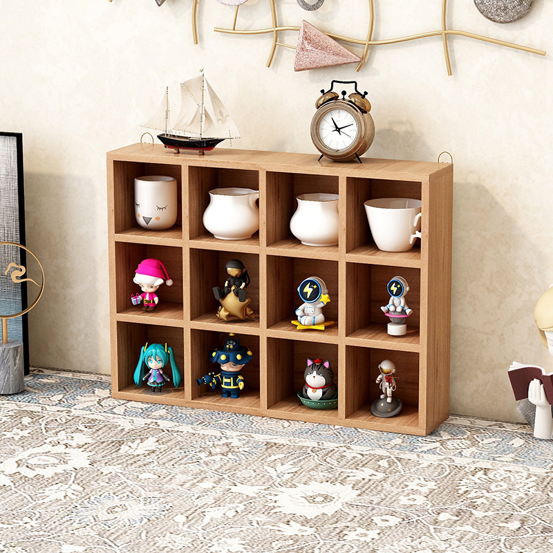 原木色壁挂墙面木质十二宫格桌面博古架摆件盲盒收纳置物架zakka