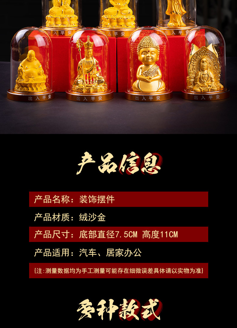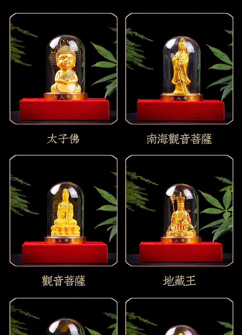 8人の守護聖人、高級車の装飾品、ベルベットサンドゴールドの仏像、車のインテリア装飾品、創造的なさまざまな車の装飾品