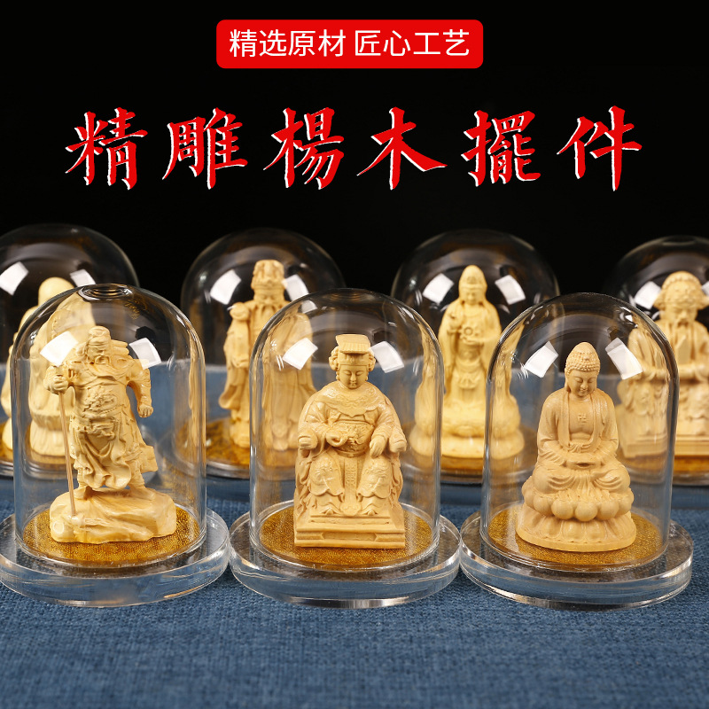 黄楊の木の自動車の置物の家庭の日用品は車の装飾品の観音関公を飾ってアクリルの透明なカバーを持ちます。