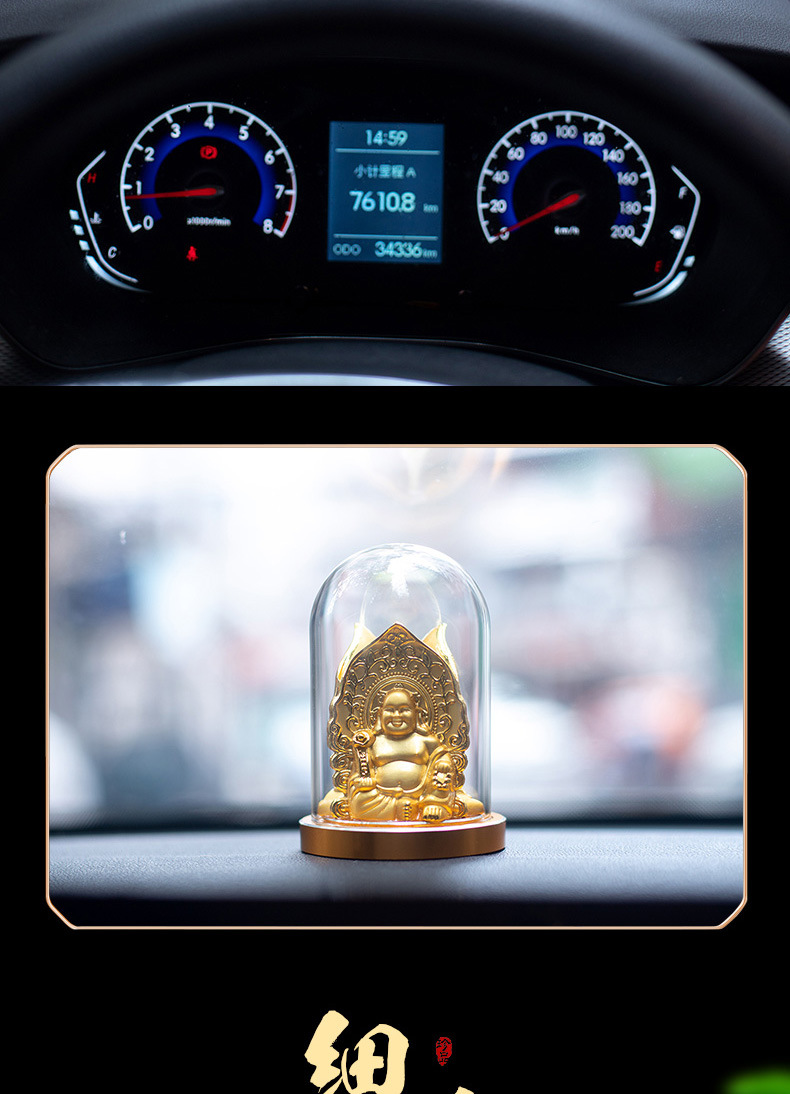 クリスタルダイヤモンド装飾車載置物弥勒蓮華仏車載センターコンソール香水置物消臭祝福男性ギフト