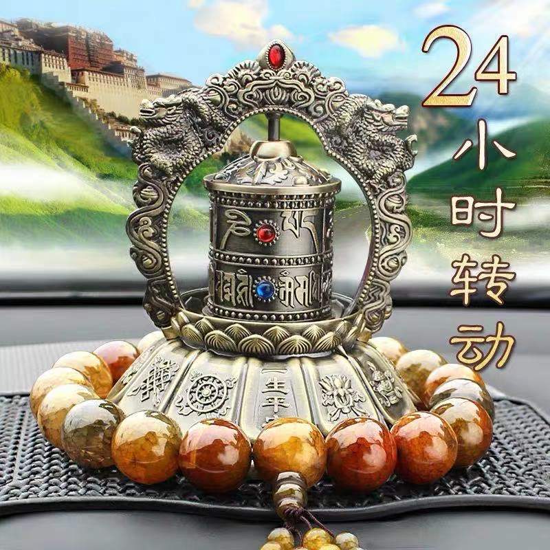 車の上の太陽エネルギーの置物の回転輪の創意はチベットの回転筒の車内の安全を守る装飾品の高級な男を輸送します。