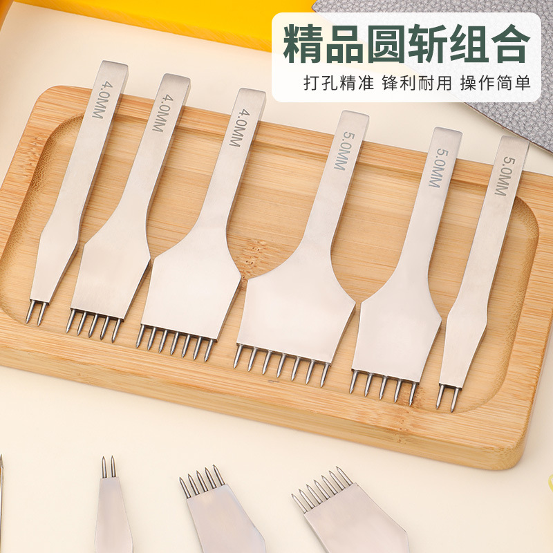 精品圆斩菱斩 DIY皮革缝合打孔器圆斩多孔针斩工具圆孔冲3/4/5mm