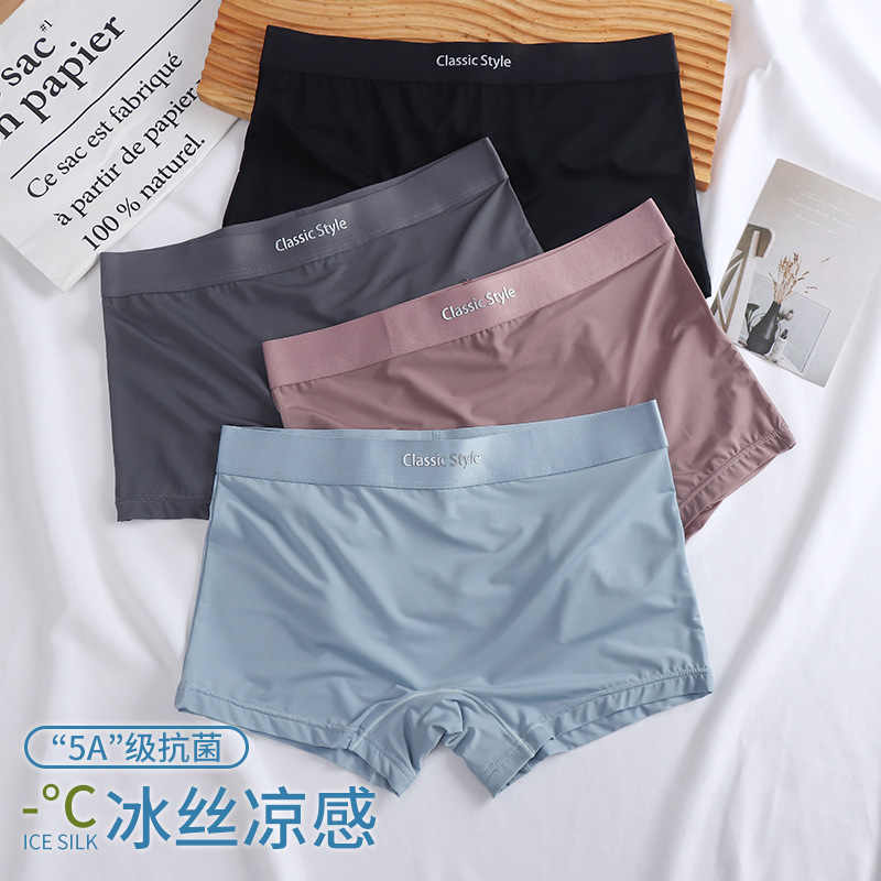 涼感通気性女性氷糸下着グラフェン股夏の薄い裸感無痕女性四角平角パンツパンツ