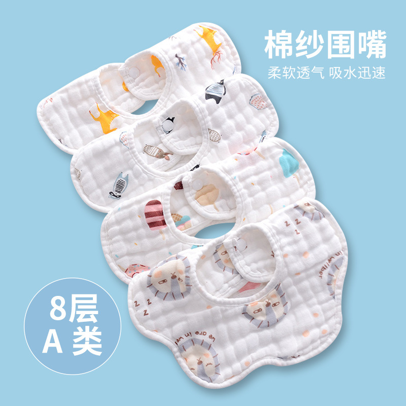 8層ガーゼ花びら型よだれかけメーカー卸売360度回転幼児用食事用エプロンベビー用よだれかけ綿ガーゼ