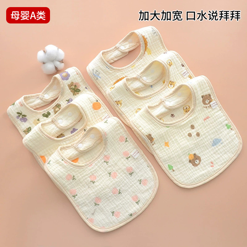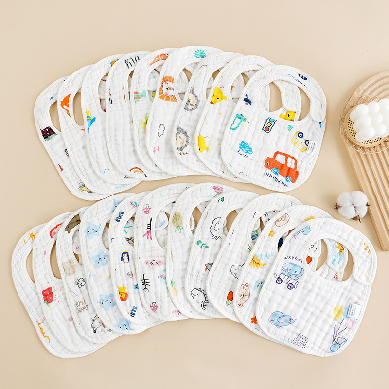 八層ガーゼu型口ベビー両面プリント側ボタン吸水よだれかけベビーよだれタオル