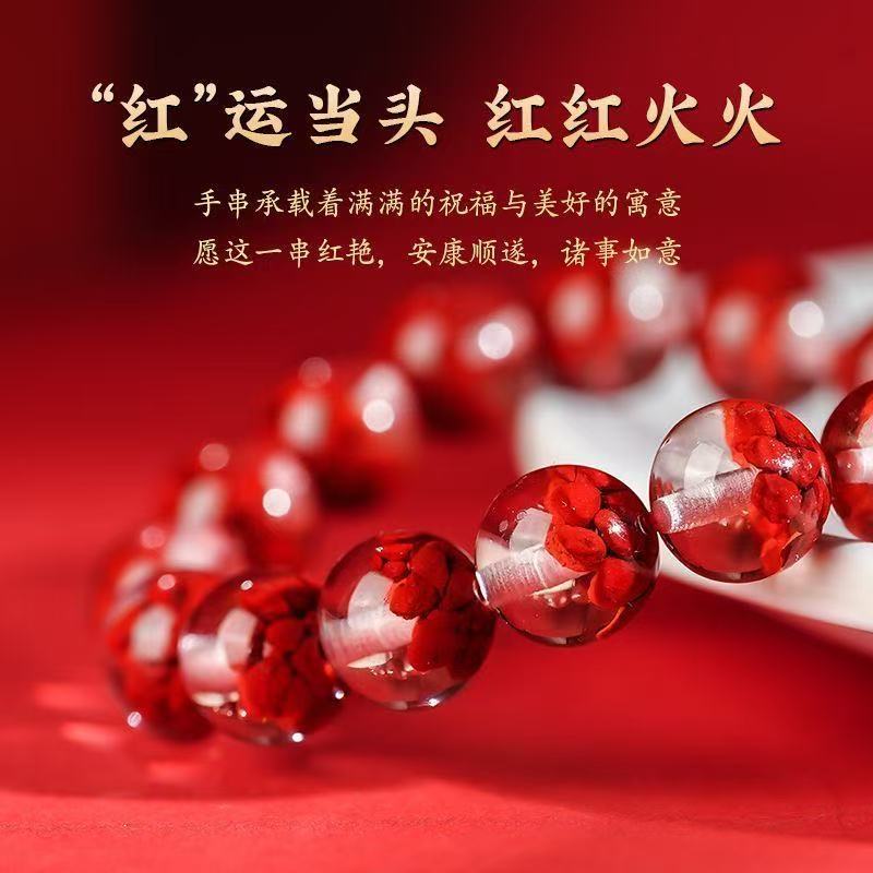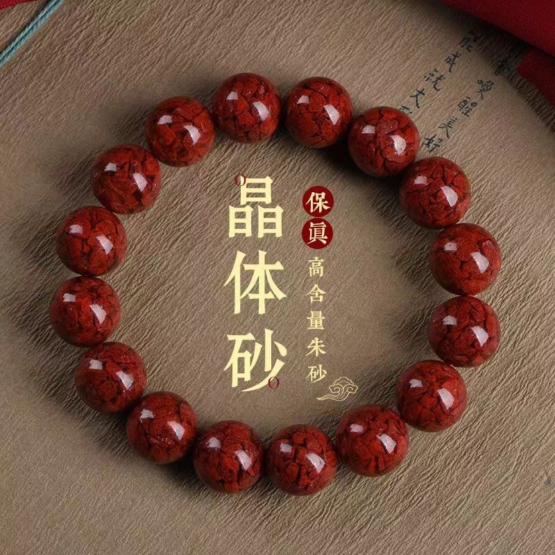 天然透光結晶朱砂手串本命年男女生肖年龍原石守護神ブレスレットカップルプレゼント