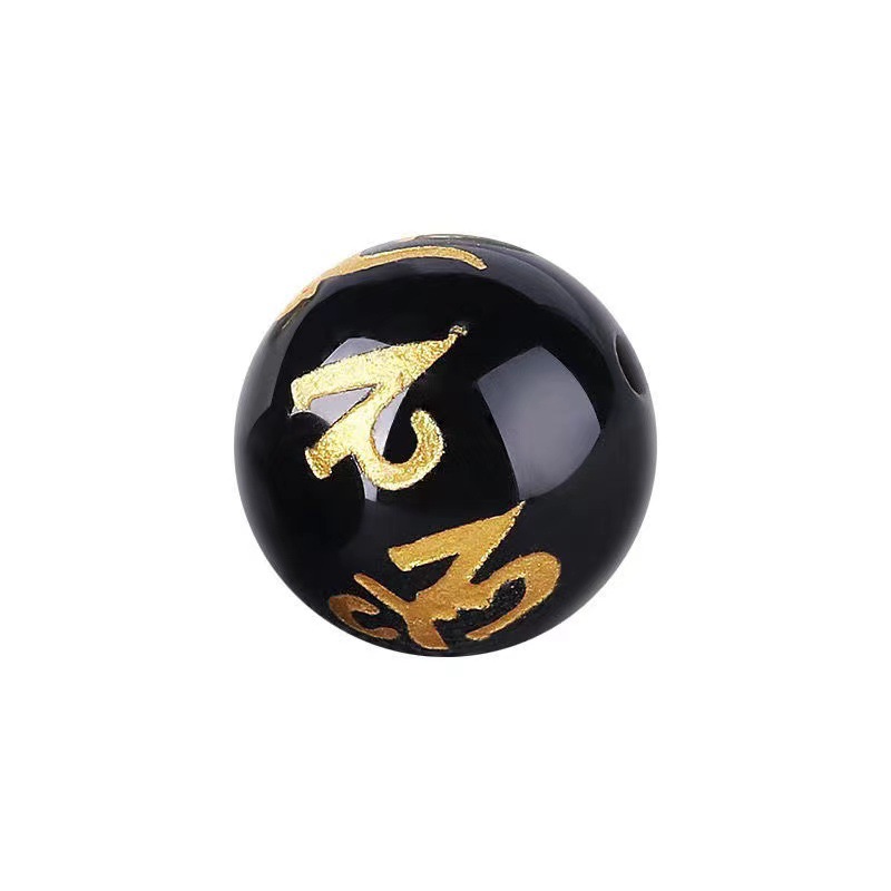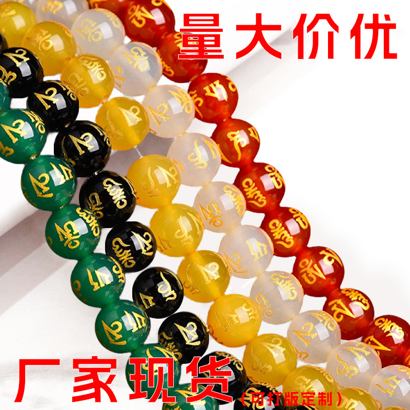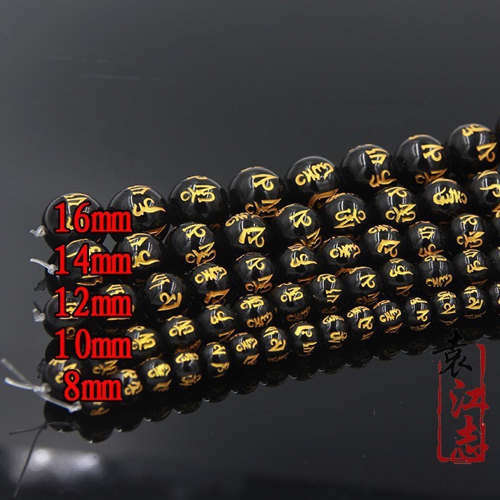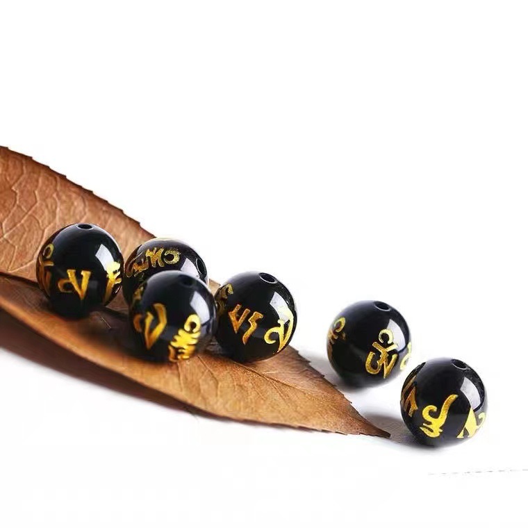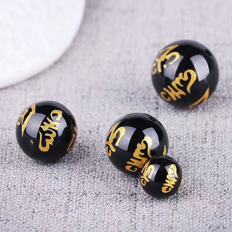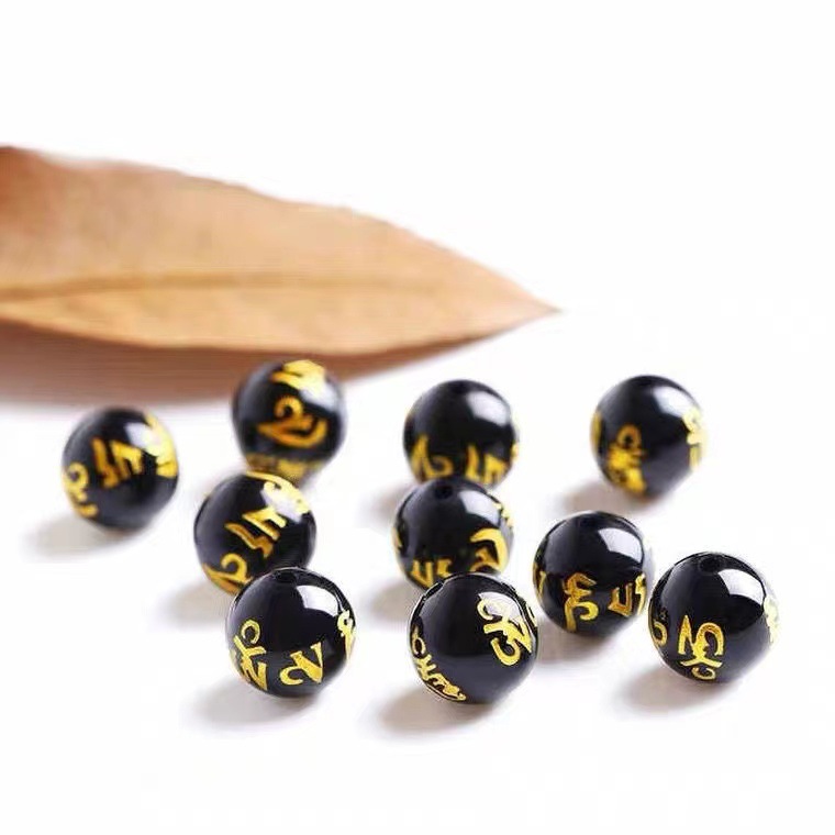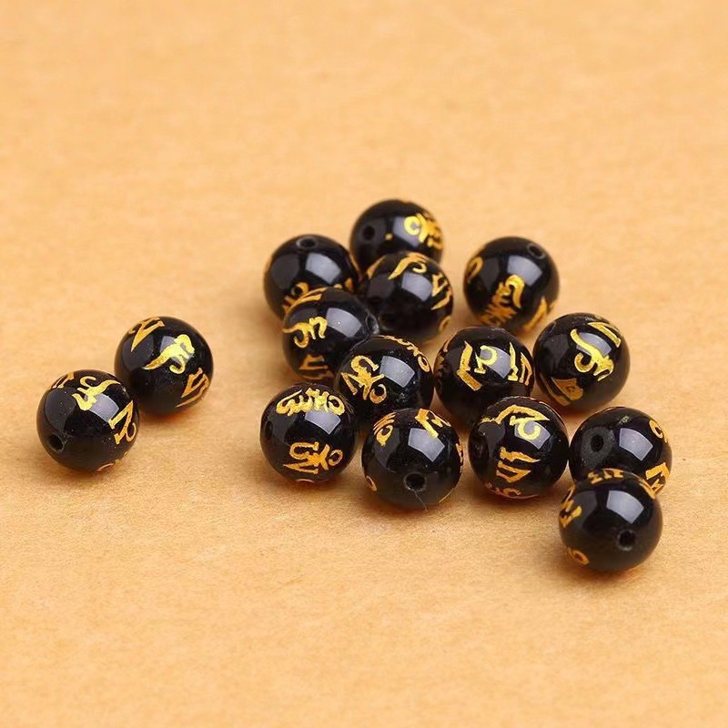天然水晶金箔黒瑪瑙六字真言散珠DIYジュエリーアクセサリービーズ卸売丸ビーズブレスレット