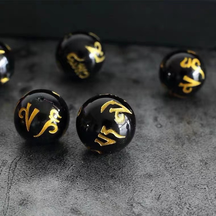 黒曜石六字真言水晶瑪瑙の散珠をまねて金六字の箴言を打ちます。