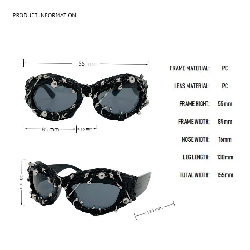 注意:本镜框上的铆钉属于手工穿插,每一个眼镜都是独一无二的,不能确保铆钉位置和图片一模一样,望买家知晓。