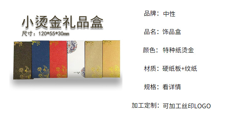 仕様 黒い小さな箔押し箱,青い小さな箔押し箱,赤い箔押し箱,金色の小さな箔押し箱,白い小さな箔押し箱