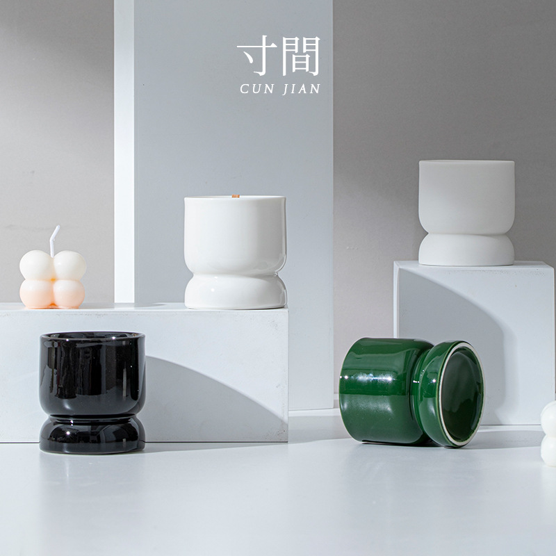 インチ間現代シンプルな素焼き陶磁器家庭用アロマキャンドルカップ異形燭台置物diy大豆ワックス容器