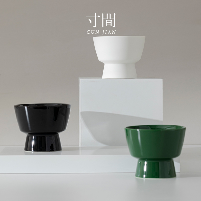寸间 中式精致高脚陶瓷香薰蜡烛杯家用现代简约家居装饰摆件礼品