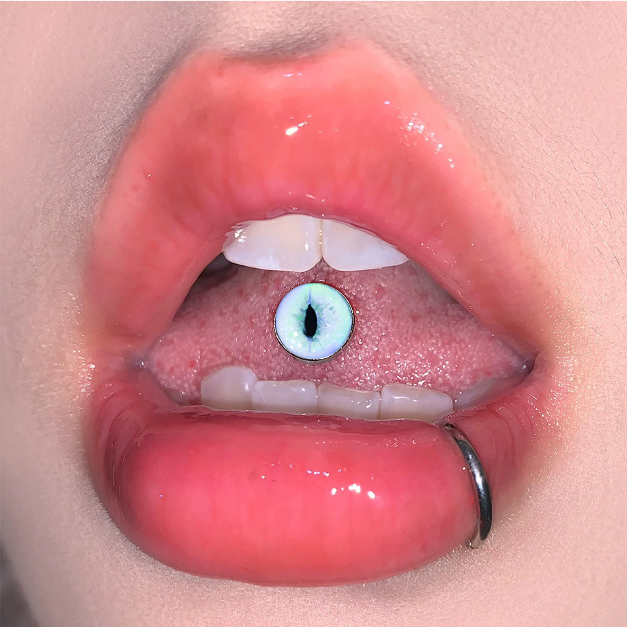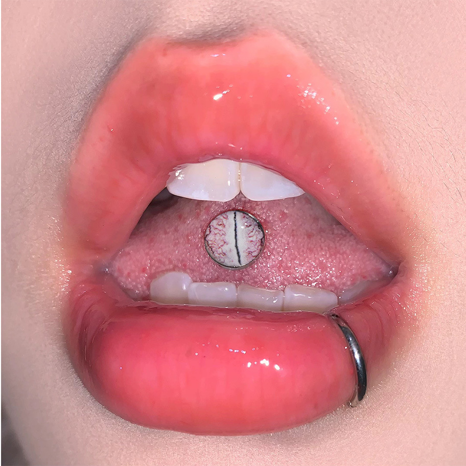 眼睛带血丝滴油哦舌钉不锈钢外螺旋舌饰包胶舌环人体穿刺饰品批发