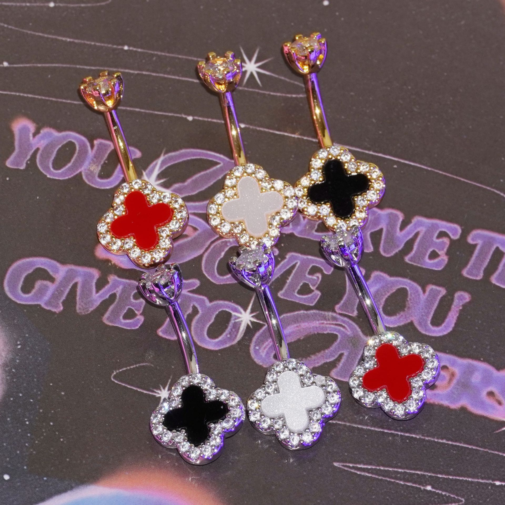 三色四叶草肚脐钉不锈钢贝母肚脐环铜镶锆石流行小众穿刺饰品批发