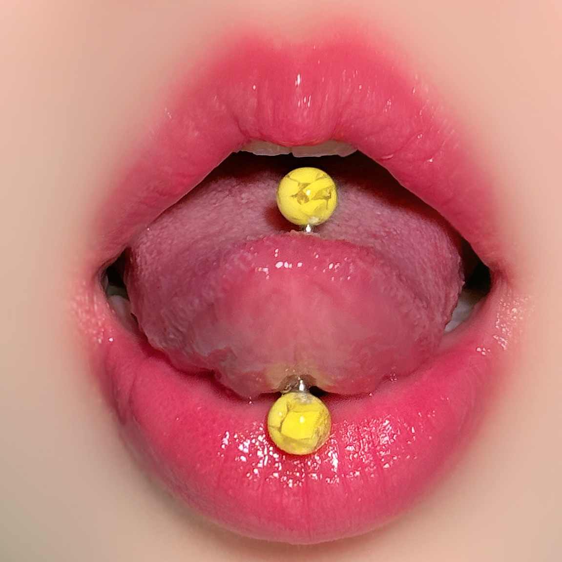 三色渐变滴油舌钉包胶个性甜美舌饰不锈钢新款穿刺饰品舌环跨境