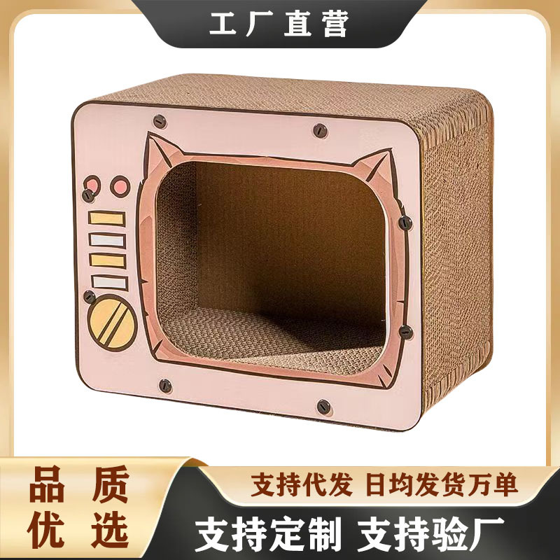 创意电视机猫抓板正方体四季通用款猫窝耐磨耐抓猫咪房子来图生产