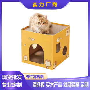 猫用爪とぎボード、正方形、完全密閉型、段ボール製猫ハウス、耐摩耗性、耐引っかき性、越境卸売、ペット猫用完全密閉型デザイン