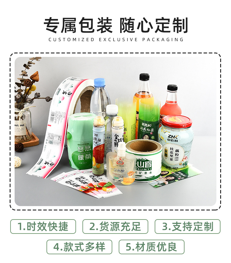 ジュース飲料ボトル本体熱収縮フィルムカスタムpvc収縮フィルム卸売り小ロットカスタムpet印刷透明フィルム