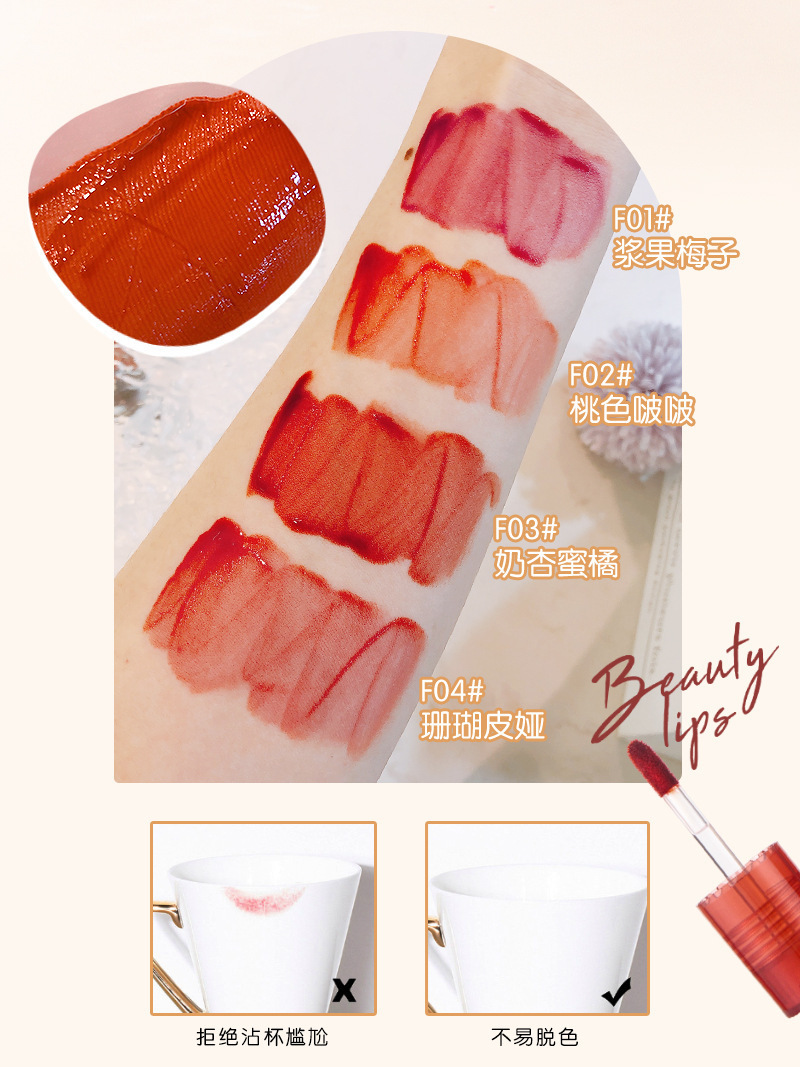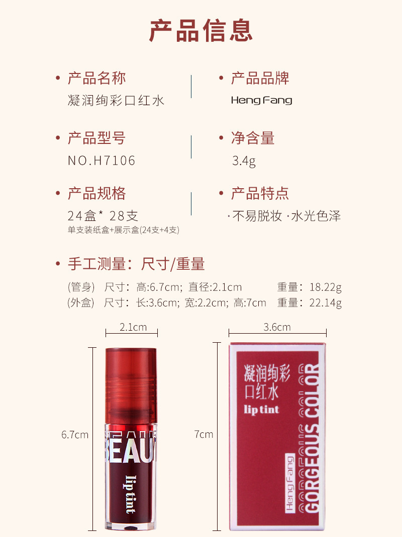 恒芳凝潤光彩口紅水鏡面唇釉薬は色が白く見えて、唇の色がつきにくいです。
