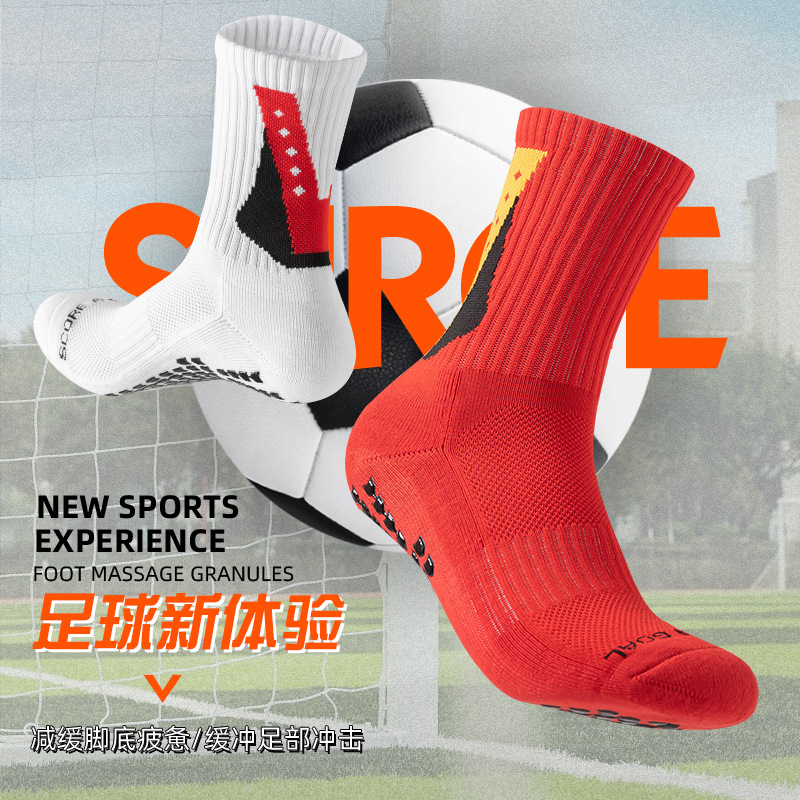 新越境成人中筒サッカー靴下男女専門スポーツ靴下タオル底点ゴム靴下滑り止めトレーニング靴下