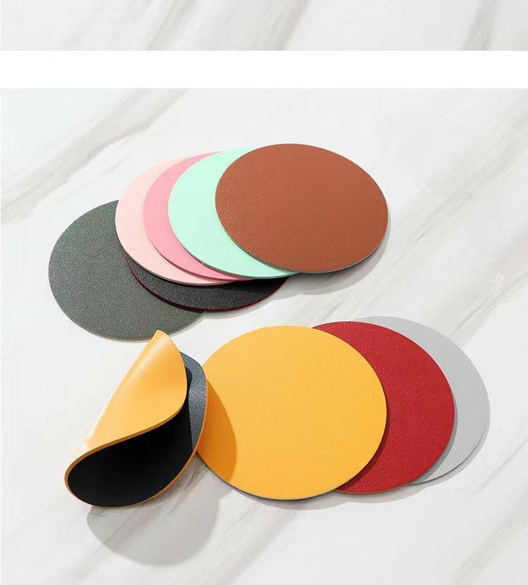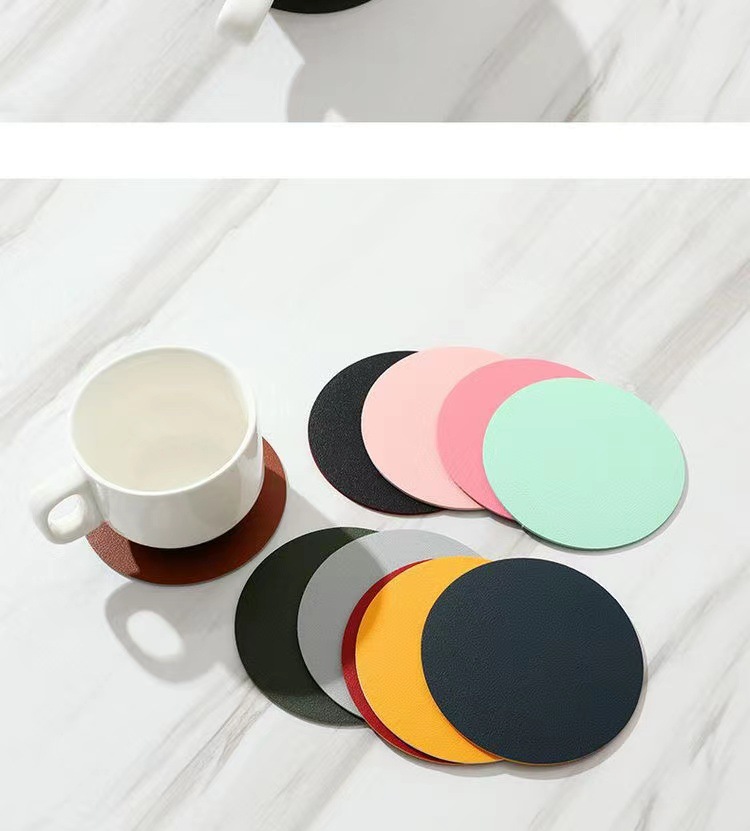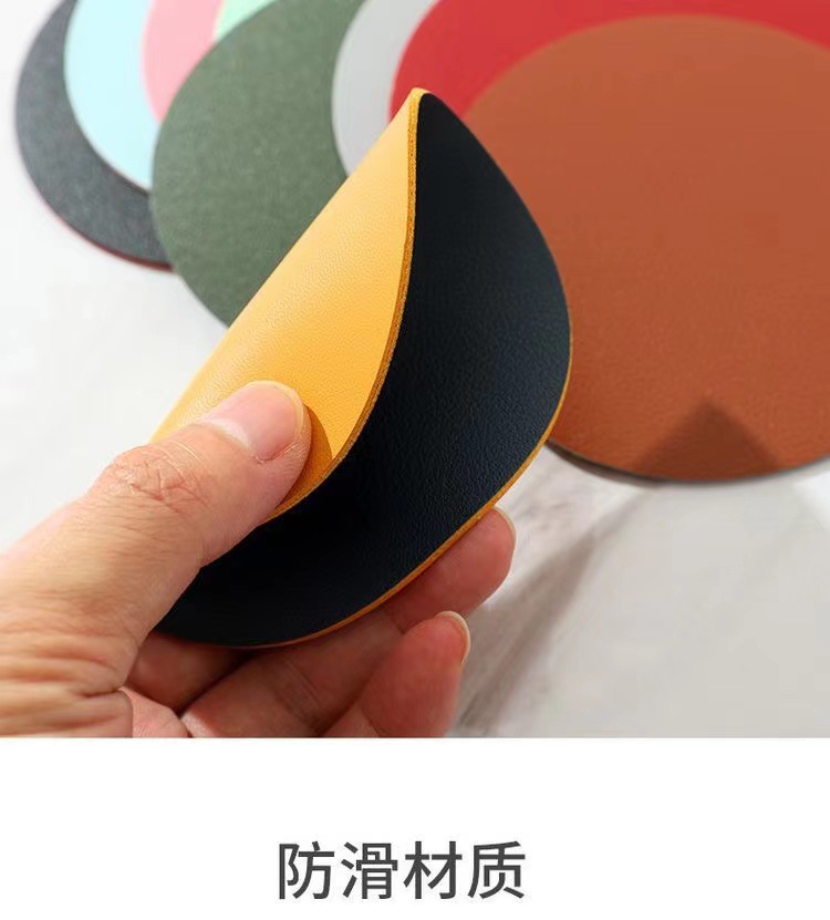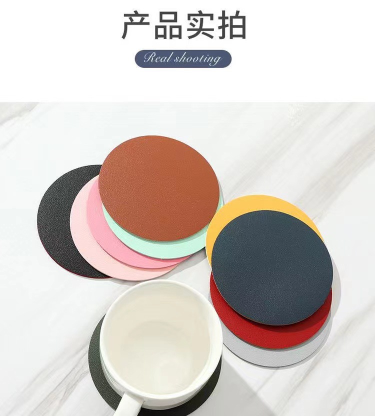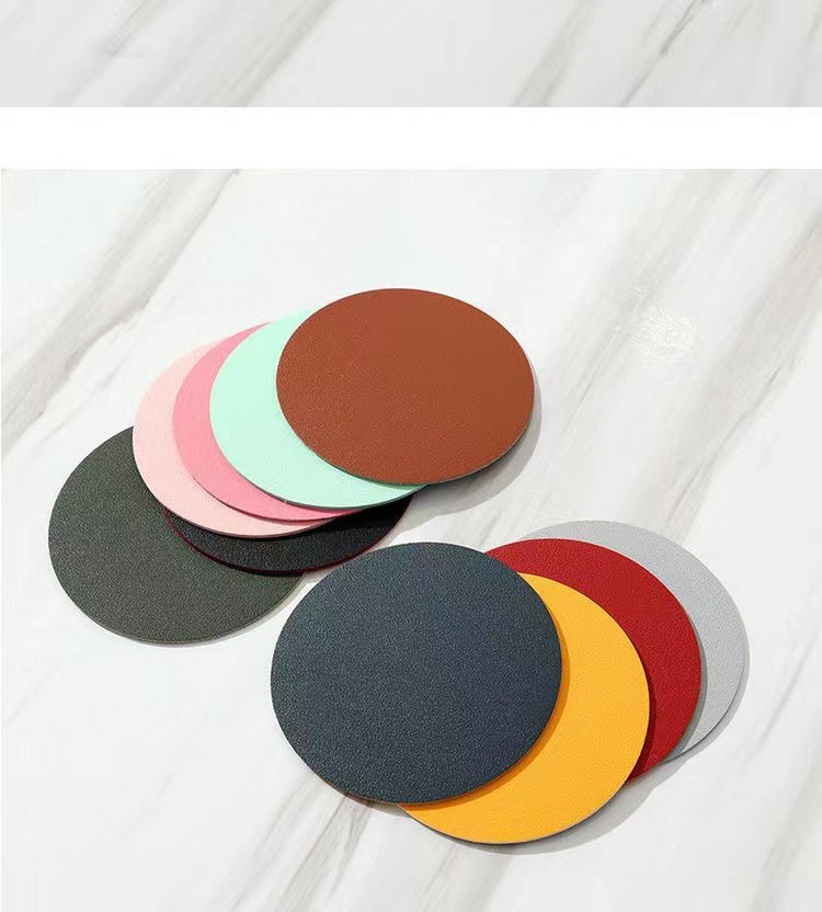 工場卸売 カップマット 丸型カップマット シンプルレザーカップマット 防水断熱無地小型カップマット 卸売