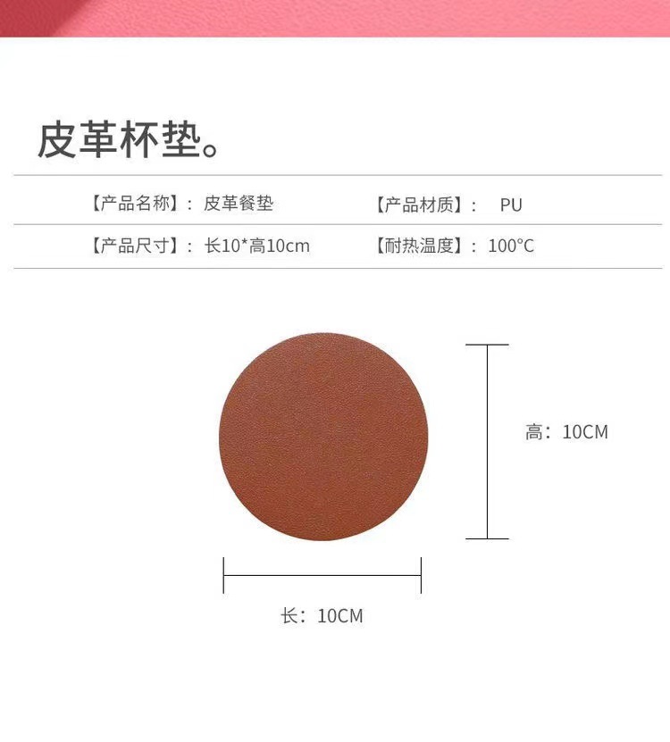 手作りdiy革コースター滑り止め防水断熱茶コースター円形シンプル北欧風純色コーヒーマット