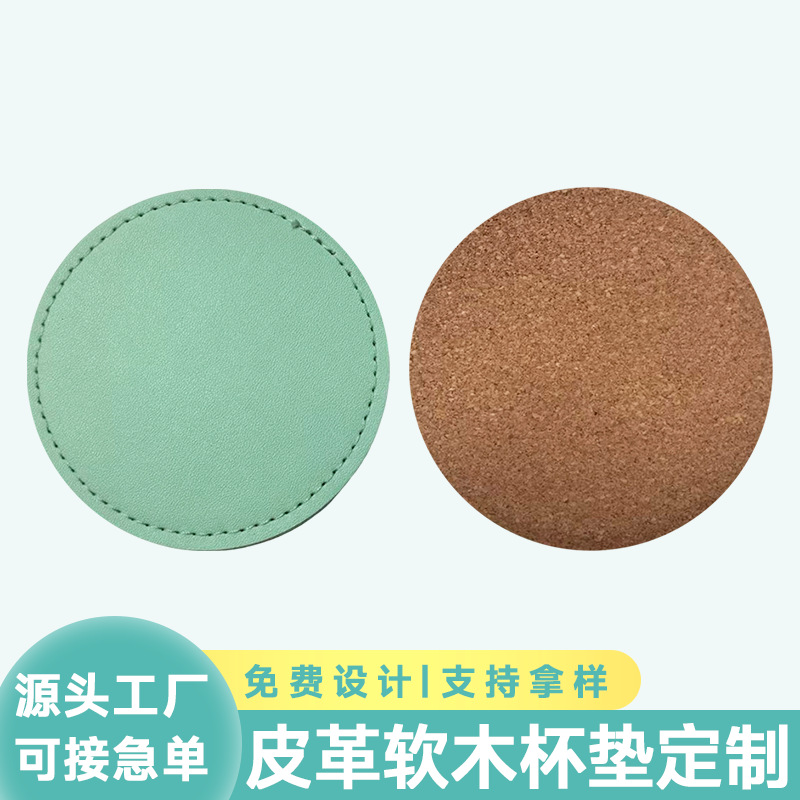 皮革软木杯垫定制时尚简约北欧风隔热餐垫青色皮质圆形杯垫定做