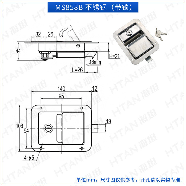 海坦ステンレス製ロック、平面プル式キャビネットロック、機械ケース、キャビネットパネルMS858A/Bロック本体、オフィスキャビネット用ロック