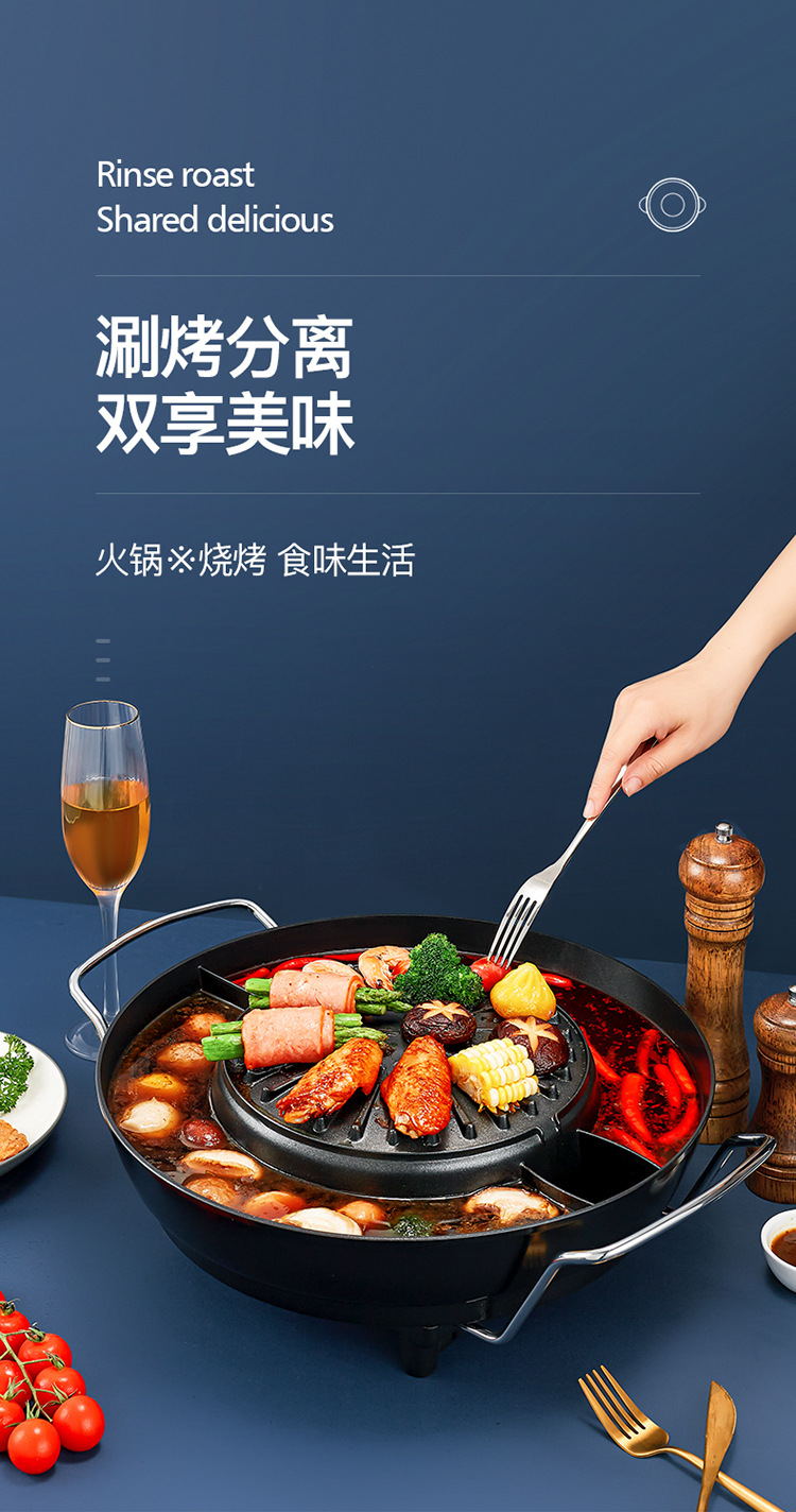 家用多功能涮烤一体锅电火锅鸳鸯锅双温控煎烤肉不粘锅电烤盘礼品