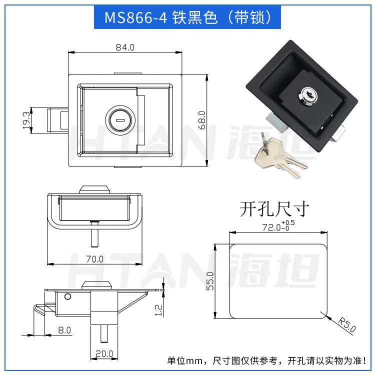 海坦ステンレス製ロック、平面プル式キャビネットロック、機械ケース、キャビネットパネルMS858A/Bロック本体、オフィスキャビネット用ロック
