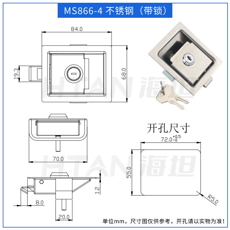 MS866-4 ステンレス鋼パネルロック 引き出しロック ヘビーデューティー ゲートプレート エンジニアリング車両 フラットロック スイッチキャビネット 機器ドアロック