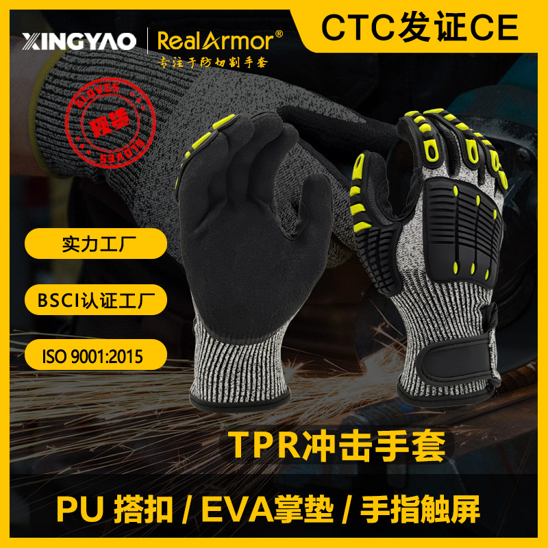 CE証明書EN388防割5級防打HPPEハンドコアEVAハンドパッド手の甲TPR防振防打機械手袋