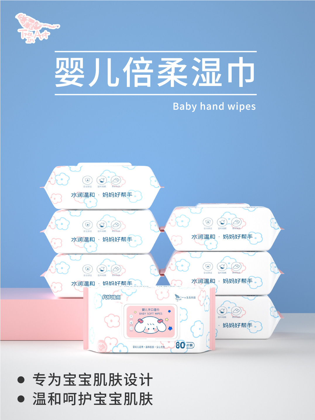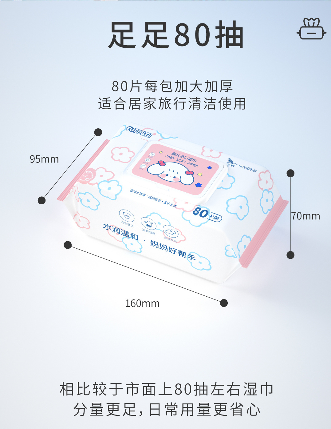 芙芙犬80大バッグ赤ちゃんウェットティッシュ家庭用赤ちゃん看護手口ウェットティッシュ新生児お尻清潔ウェットティッシュ