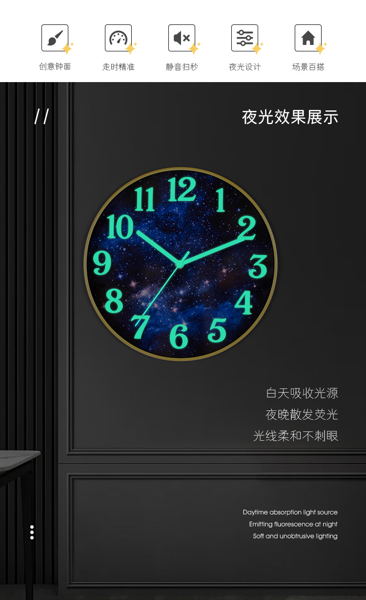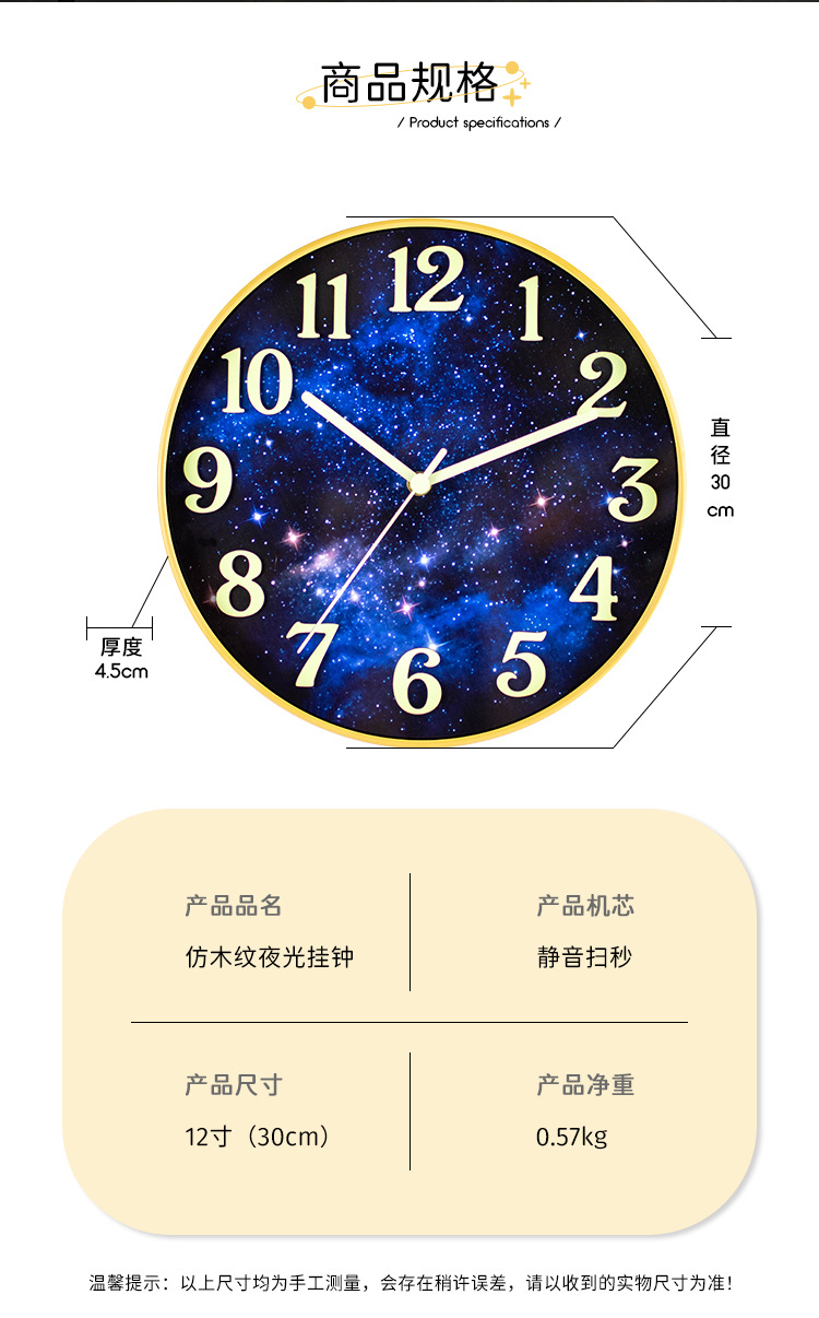 12inch 発光時計壁時計リビングルームシンプルな時計リビングルームテーブル壁掛けサイレント壁時計クォーツ時計壁掛け