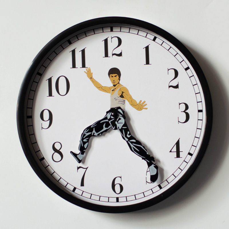 10インチ国境を越えた新型李小龍工夫個性掛け時計静音時計装飾円形時計ウォールクロック