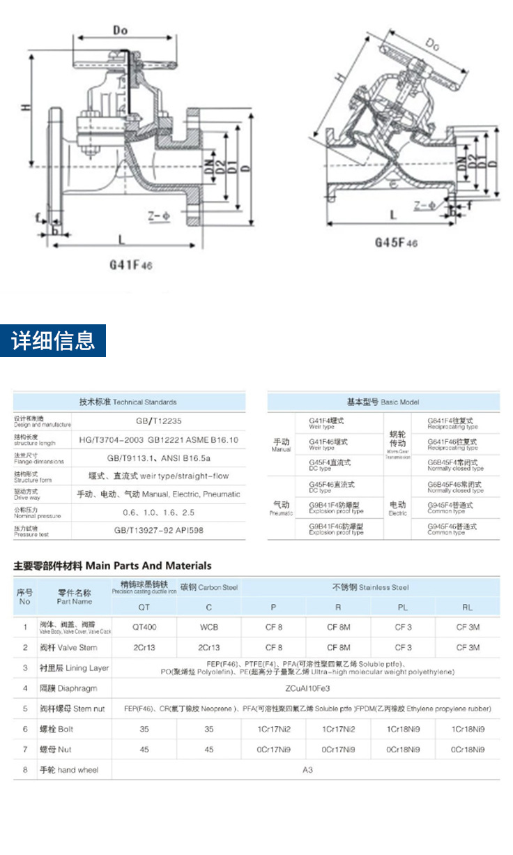 ダイヤフラムバルブ G41F46-16 フッ素ライニングダイヤフラムバルブ 鋳鋼 ステンレス鋼 鋳鋼 ラバーライニングダイヤフラムバルブ