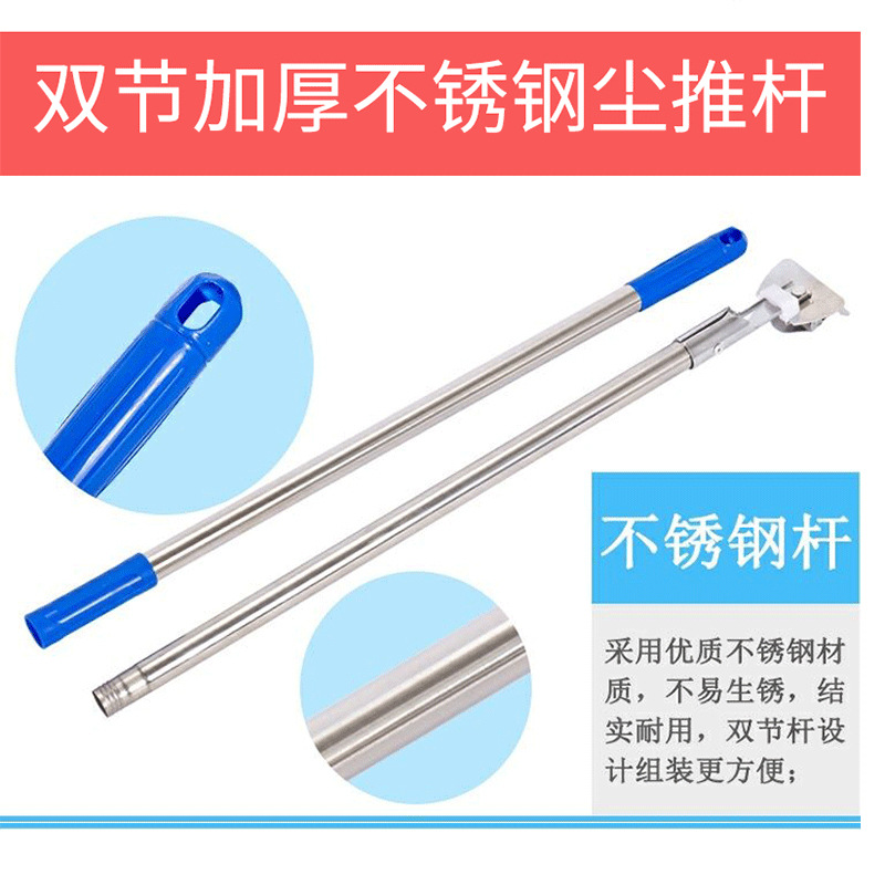 厚いモップの棒の双節のステンレスの塵を厚くして平板を押してねじの取っ手を引いて青いモップの棒に突き合わせます。
