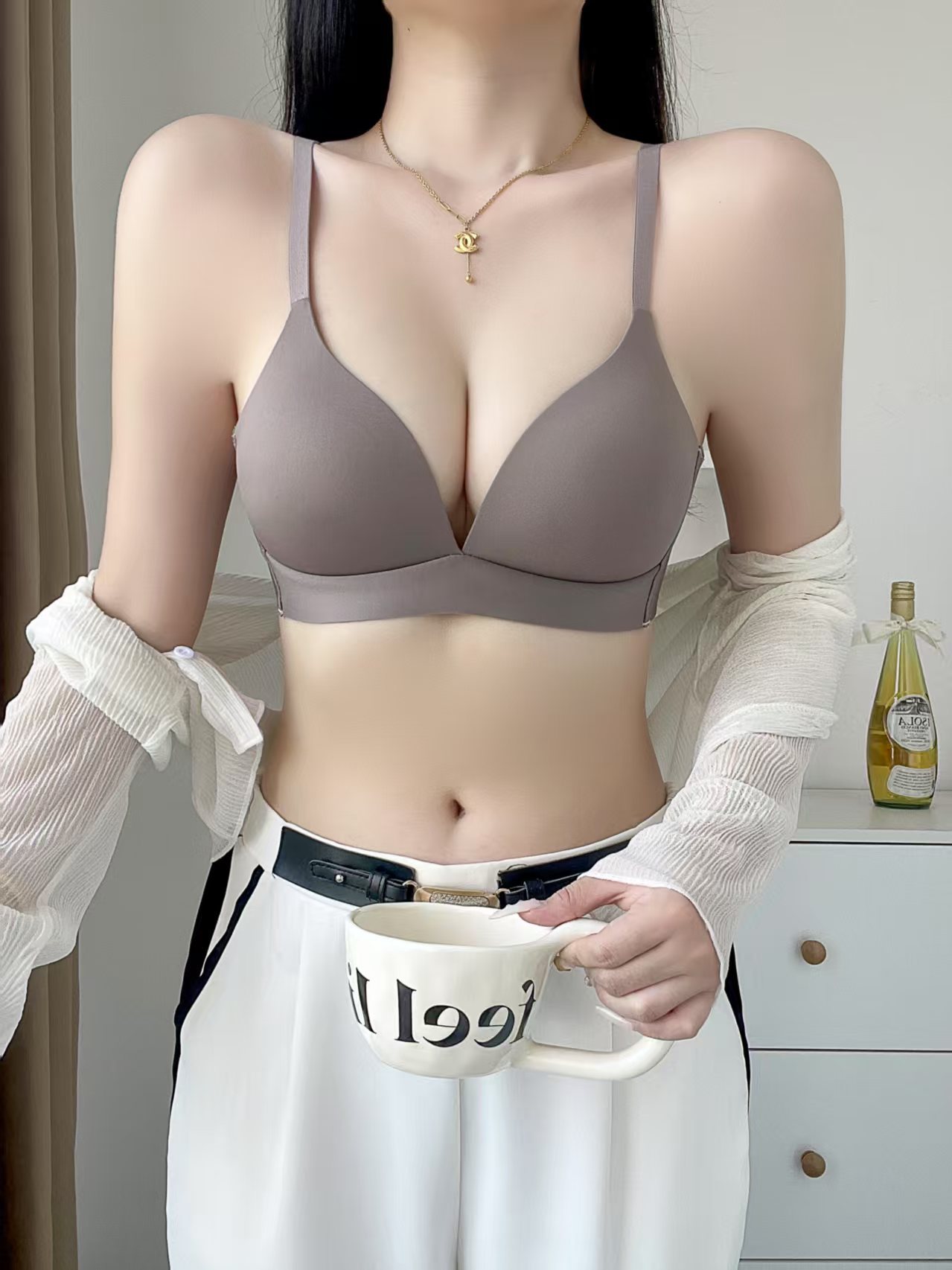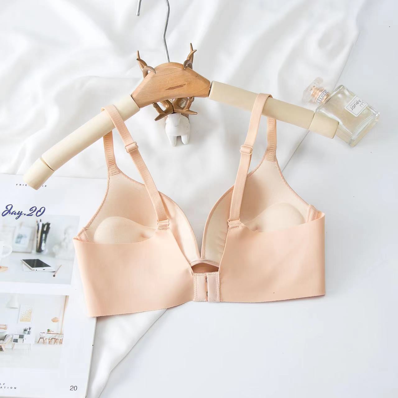 日本の無痕下着の女性の胸が集まって前のボタンの薄いタイプがあります。